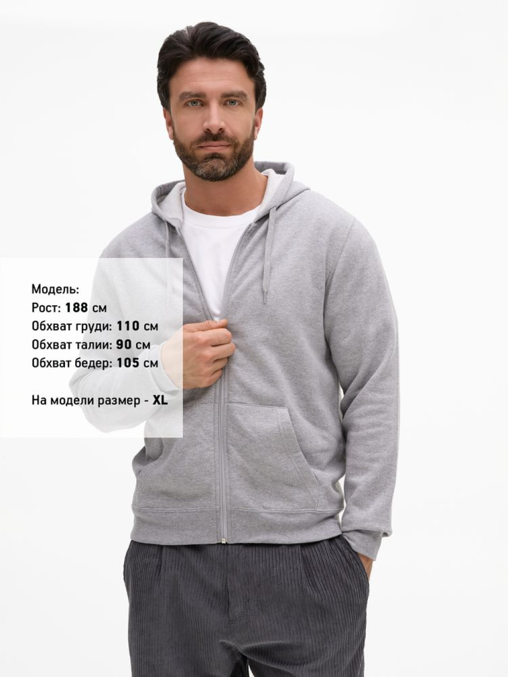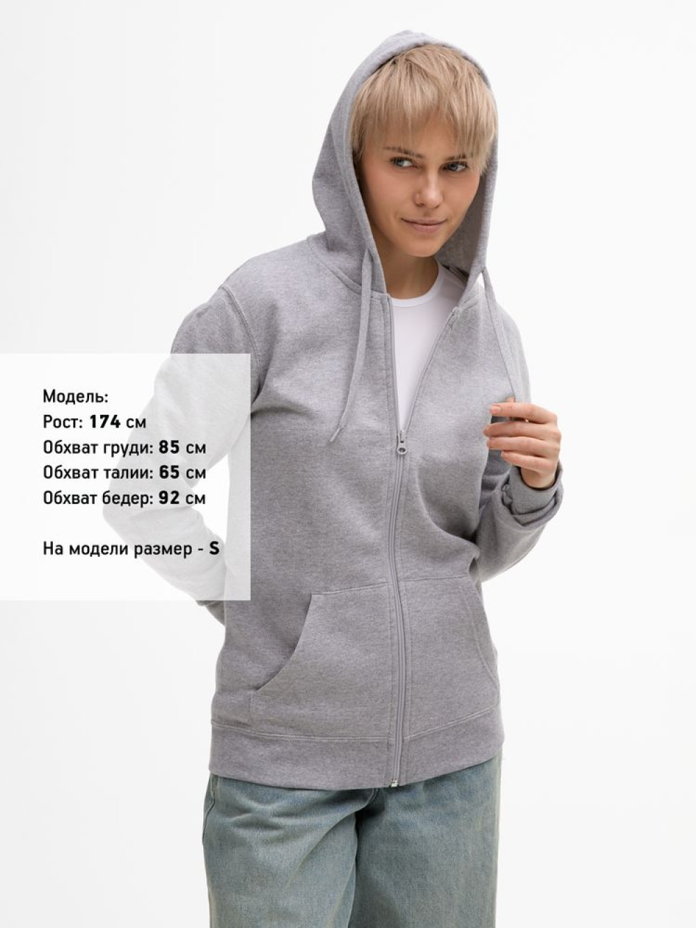 Толстовка без боковых швов на молнии с капюшоном.