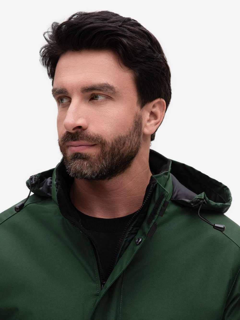 • Капюшон с утягивающими шнурами, складывается и убирается в воротник