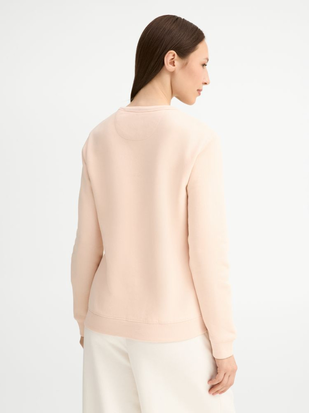 изнутри, в шве горловины — только бирка с размером, что позволяет