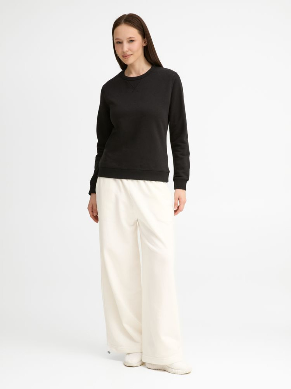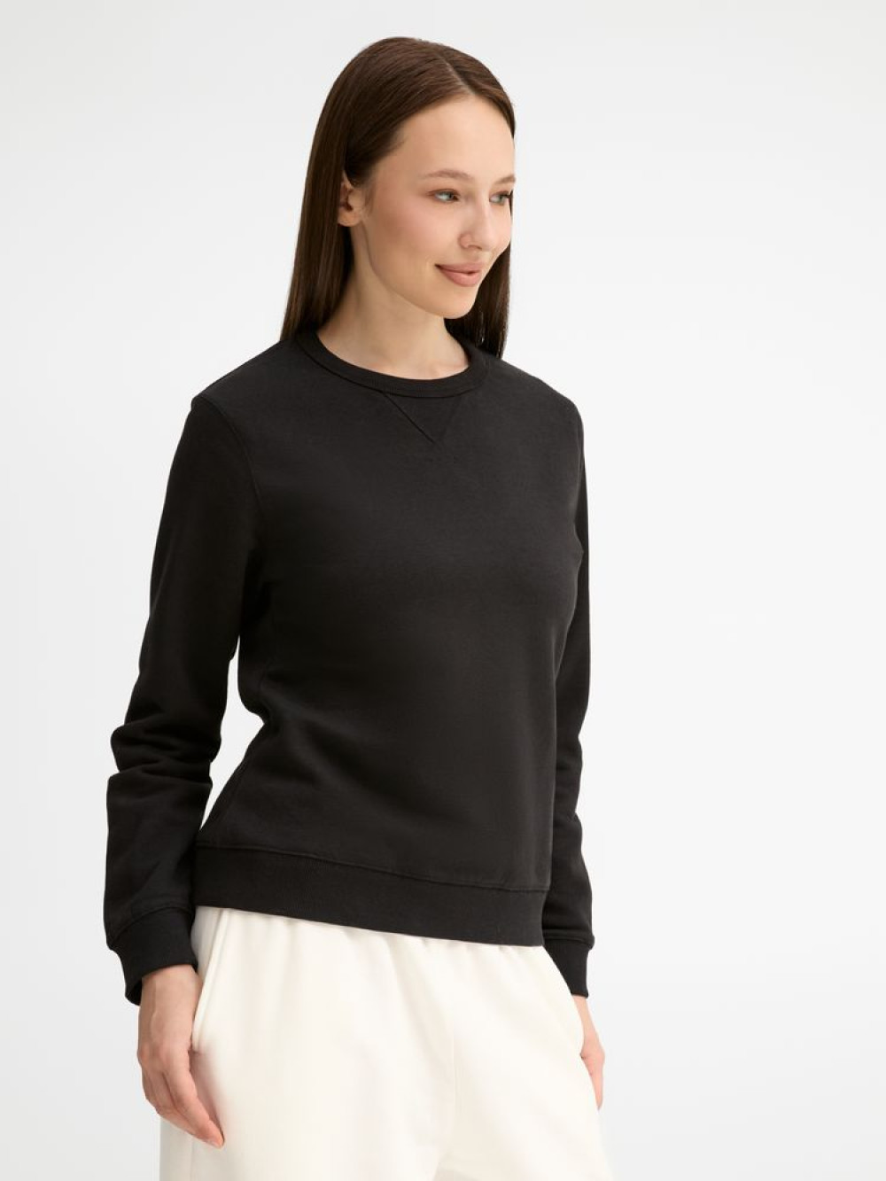 Женская утепленная толстовка с круглым вырезом и декоративной треугольной вставкой. Лейбл производителя в боковом шве изнутри, в шве горловины — только бирка с размером, что позволяет вам нанести свой логотип.