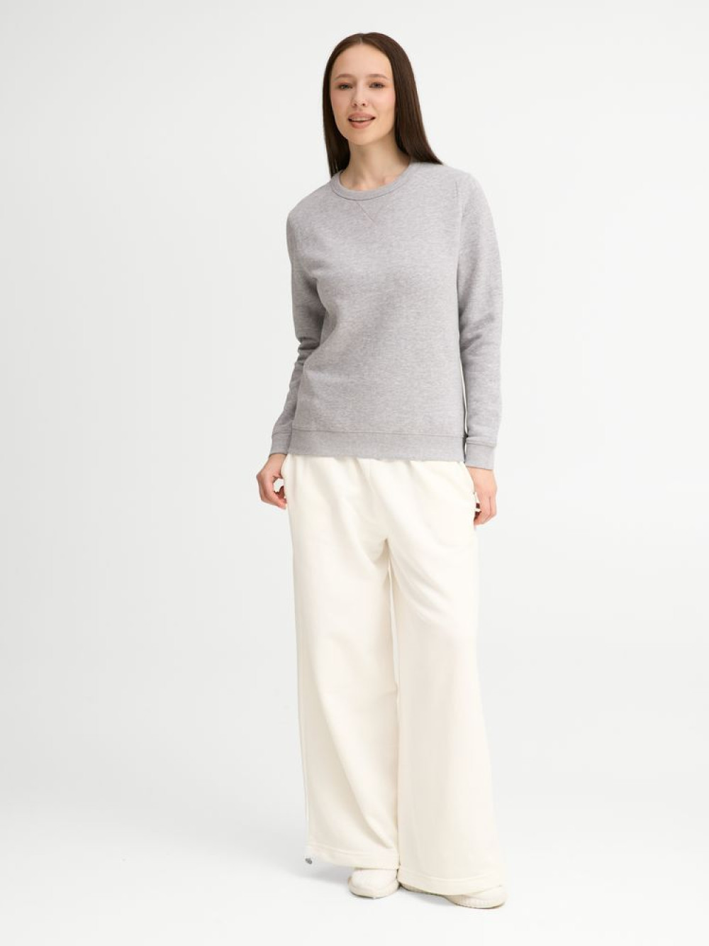 Женская утепленная толстовка с круглым вырезом и декоративной