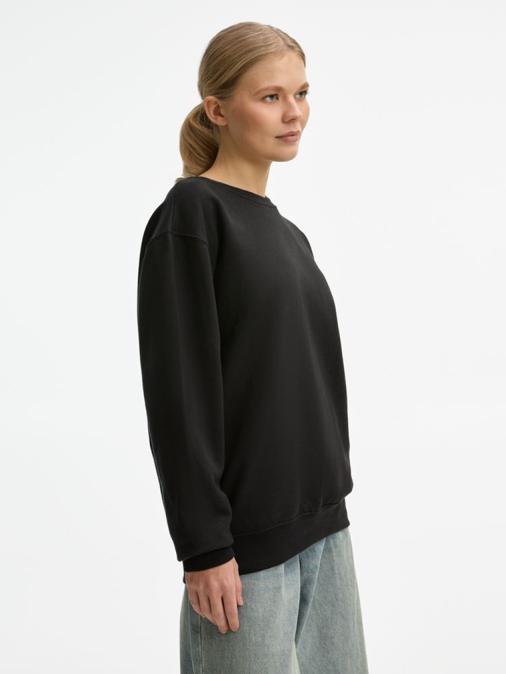 Свитшот унисекс из хлопка и переработанного полиэстера с круглым вырезом и втачным рукавом.