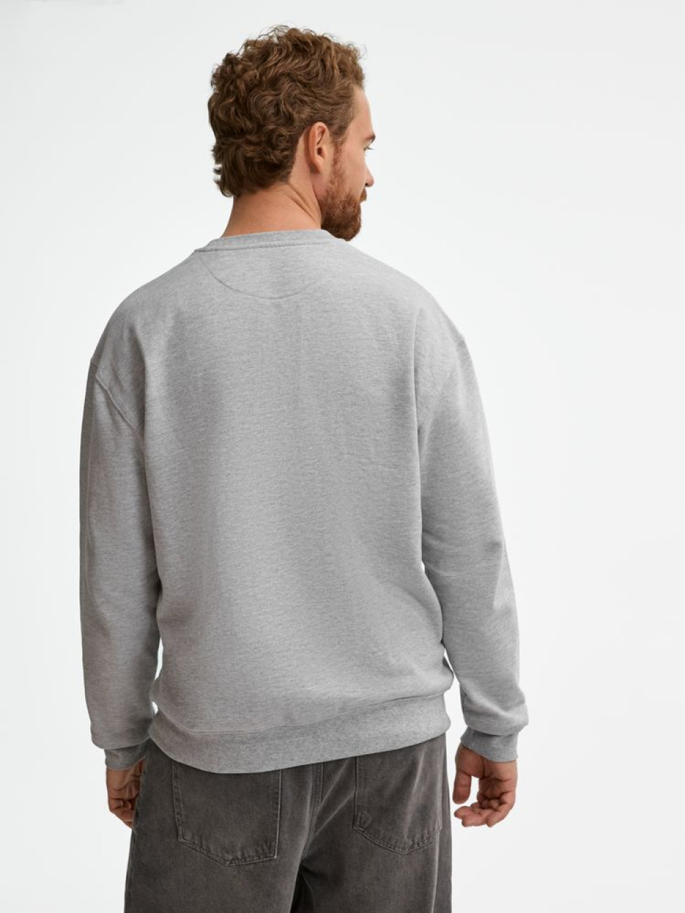 Свитшот унисекс из хлопка и переработанного полиэстера с круглым вырезом и втачным рукавом.
