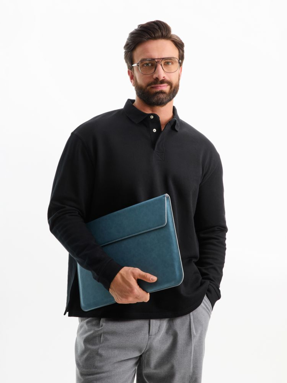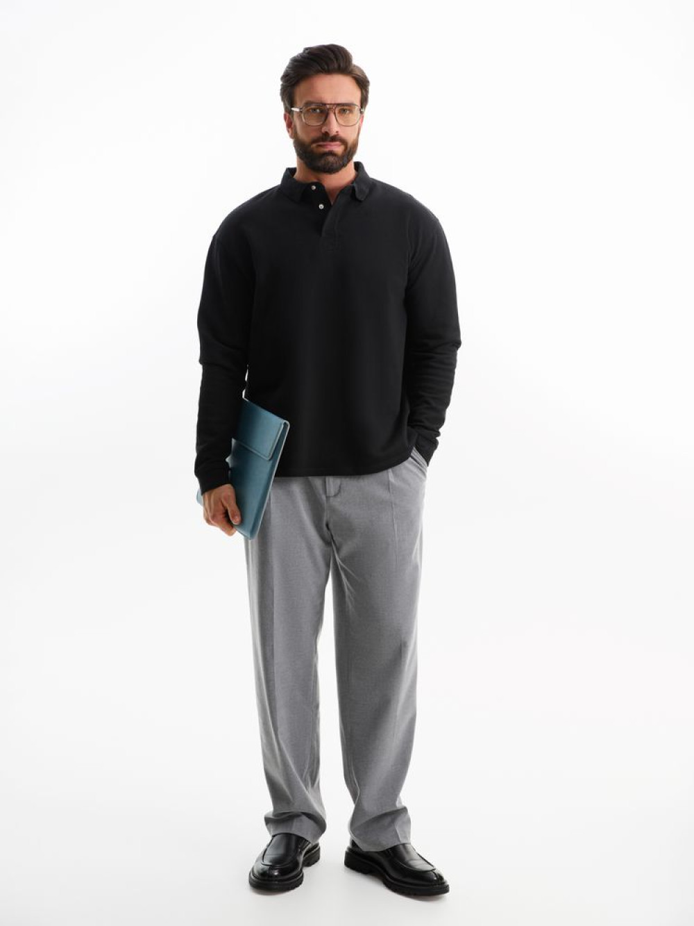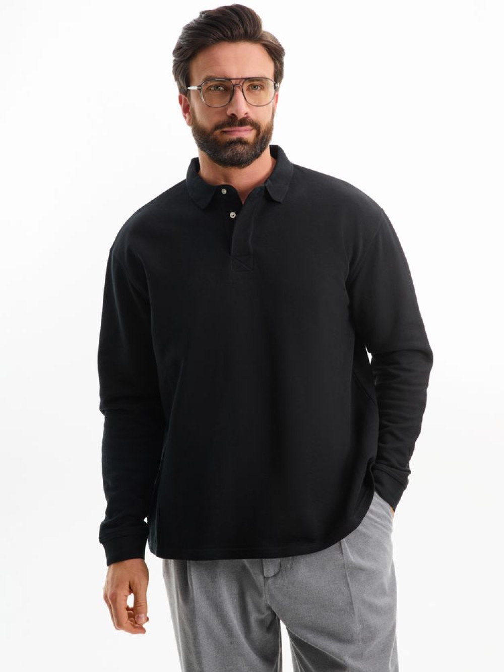 Рубашка поло оверсайз с длинным рукавом Heritage, черная, размер S