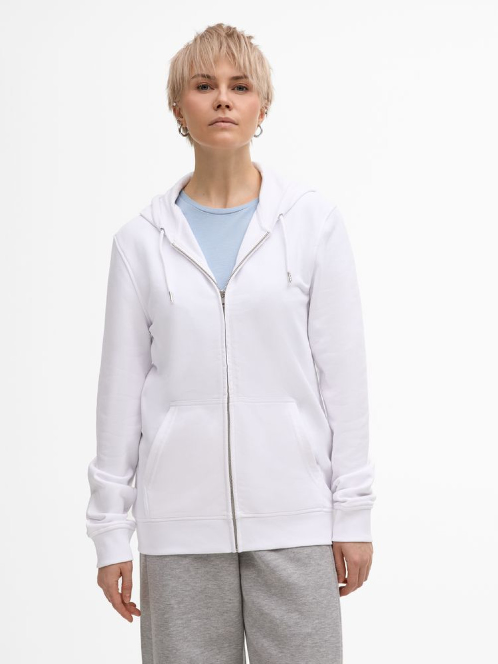 Базовая толстовка унисекс на молнии выполнена из органического хлопка и переработанного полиэстера.