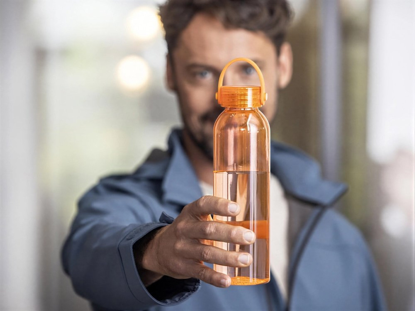 Бутылка для воды изготовлена из переработанного ПЭТ,