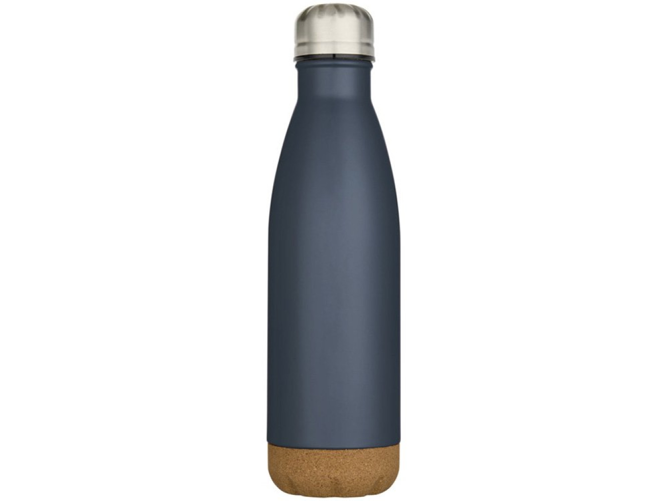 Бутылка для воды из нержавеющей стали с вакуумной изоляцией и пробковыми деталями в нижней части. Двойная изоляция стенок сохраняет напитки горячими или холодными в течение нескольких часов. Поставляется в подарочной коробке из переработанного картона. Объем: 500 мл. 90% нержавеющая сталь, 10% Пробка. упаковка FSC Mix Credit P5.1 CU-COC-877277.
