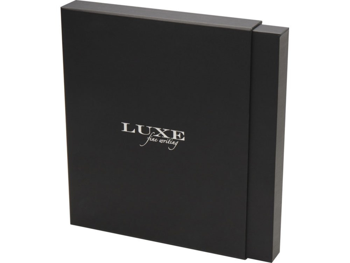 Набор Legato — это элегантное сочетание блокнота формата А5 и ручки-роллера. Ручка имеет верхний корпус из переработанной латуни, сертифицированной RCS, с серебряным хромированием, нижний корпус с цветным напылением, металлические хромированные аксессуары и логотип LUXE на среднем кольце. Цвет чернил: синий. Длина непрерывной линии: 400 метров. Диаметр пишущего узла: 0,7 мм. В комплект входит дополнительный стержень черного цвета. В блокноте 80 листов разлинованной кремовой бумаги плотностью 80 г/м², обложка из полиуретана, похожего на кожу, эластичная застежка, лента-закладка. Металлический шильд на эластичной застежке. Поставляется в картонной подарочной коробке.