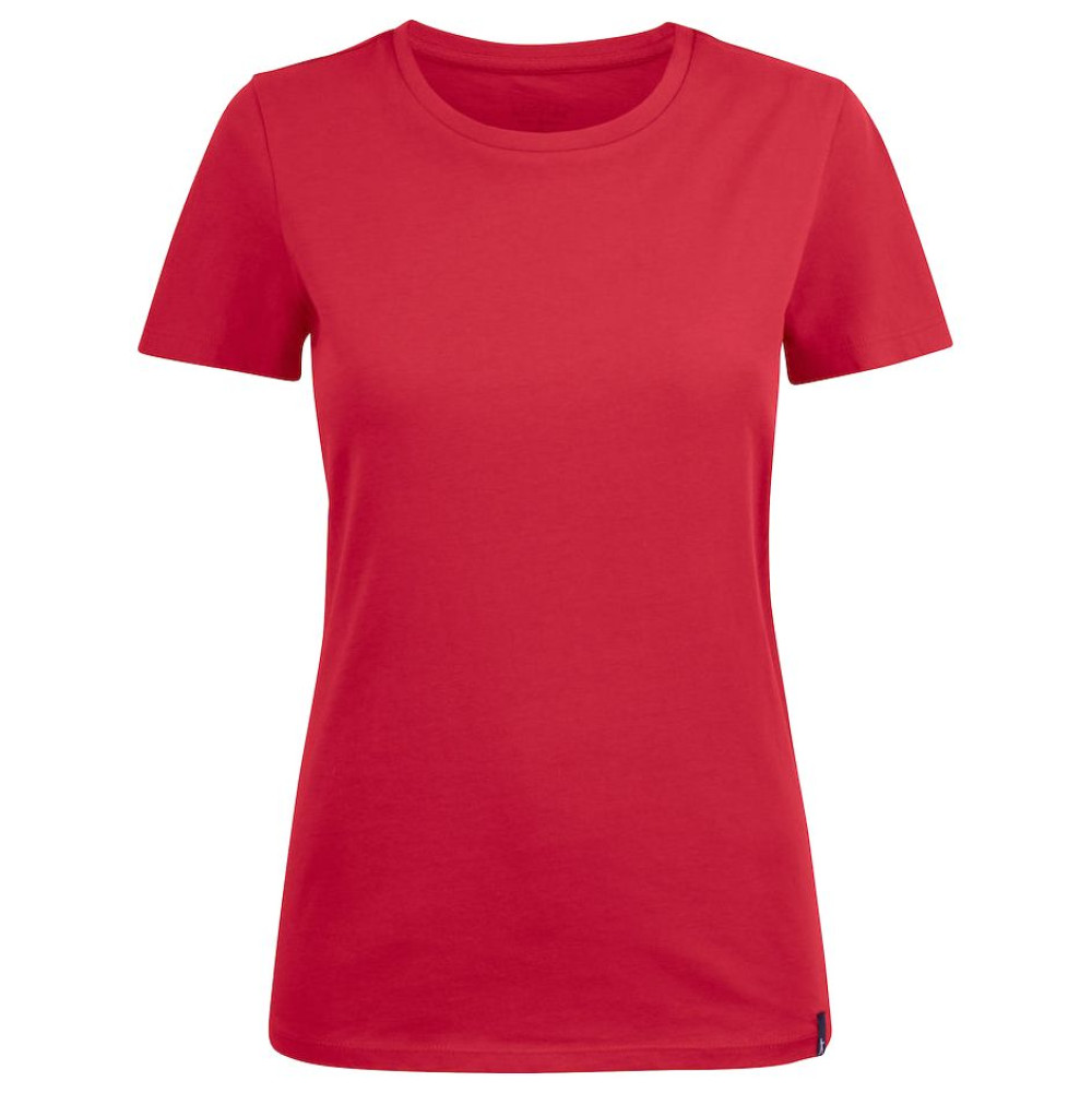 Женская футболка с круглым вырезом. Двухслойная резинка предохраняет воротник от деформации после стирки.