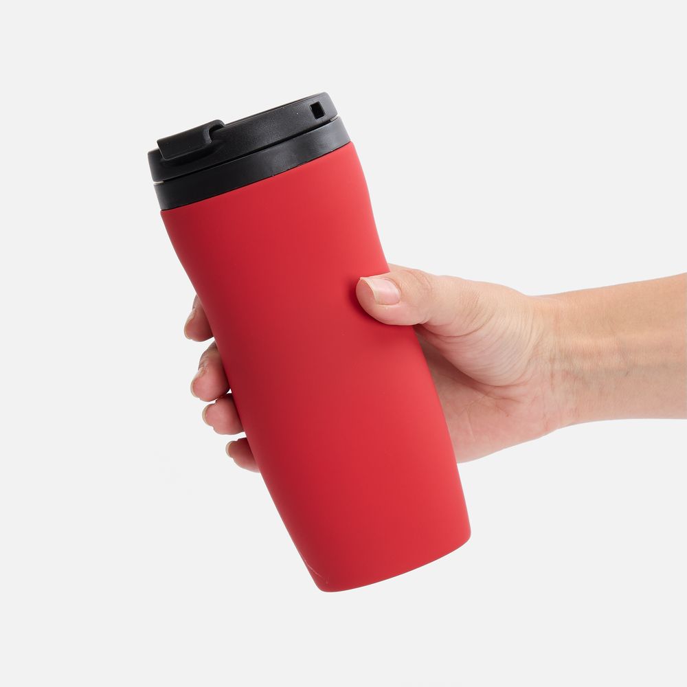 клапаном для питья. Покрытие софт-тач. В отверстие в крышке можно