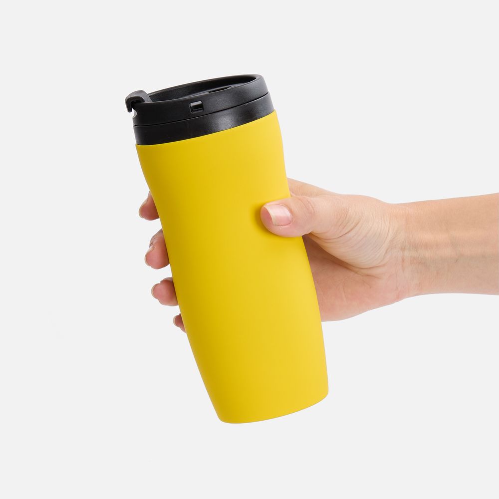клапаном для питья. Покрытие софт-тач. В отверстие в крышке можно