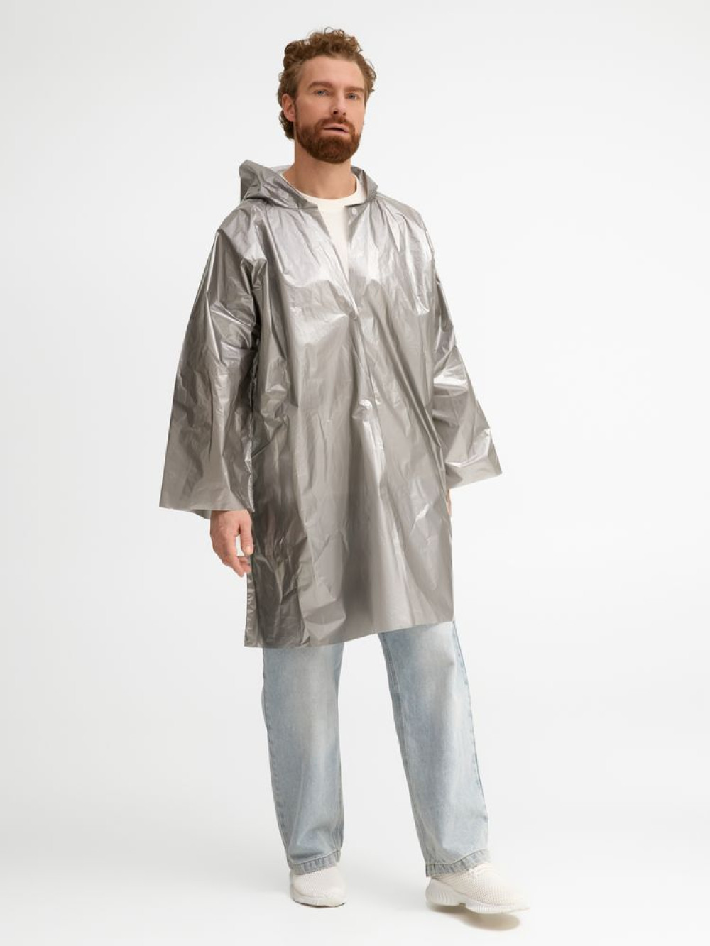 Дождевик-плащ с капюшоном и длинным рукавом из плотного полиэтилена