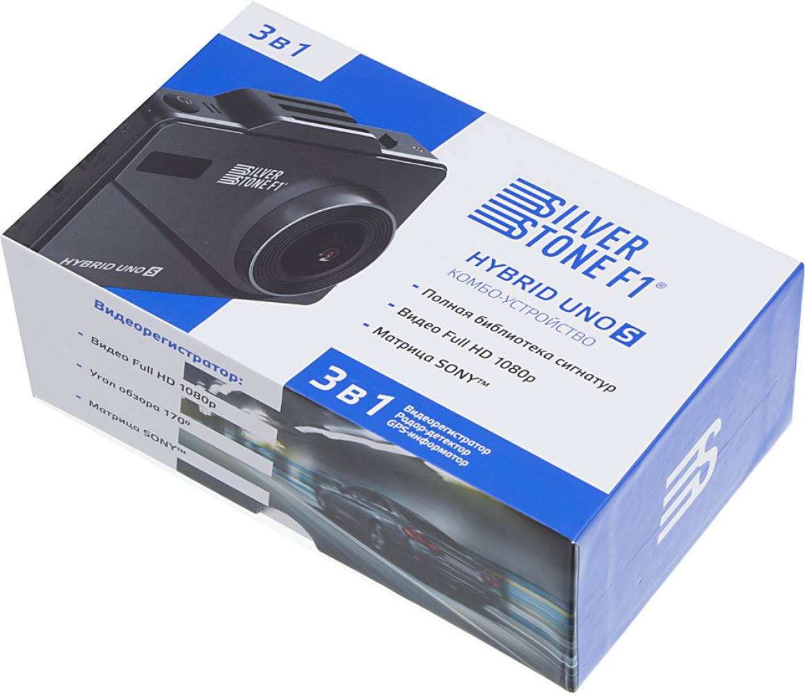 Комплектация:Комбо-устройство SilverStone F1 HYBRID UNO S; Крепление на лобовое стекло автомобиля; Адаптер питания с разъемом прикуривателя; Руководство пользователя (инструкция по эксплуатации); Гарантийный талон