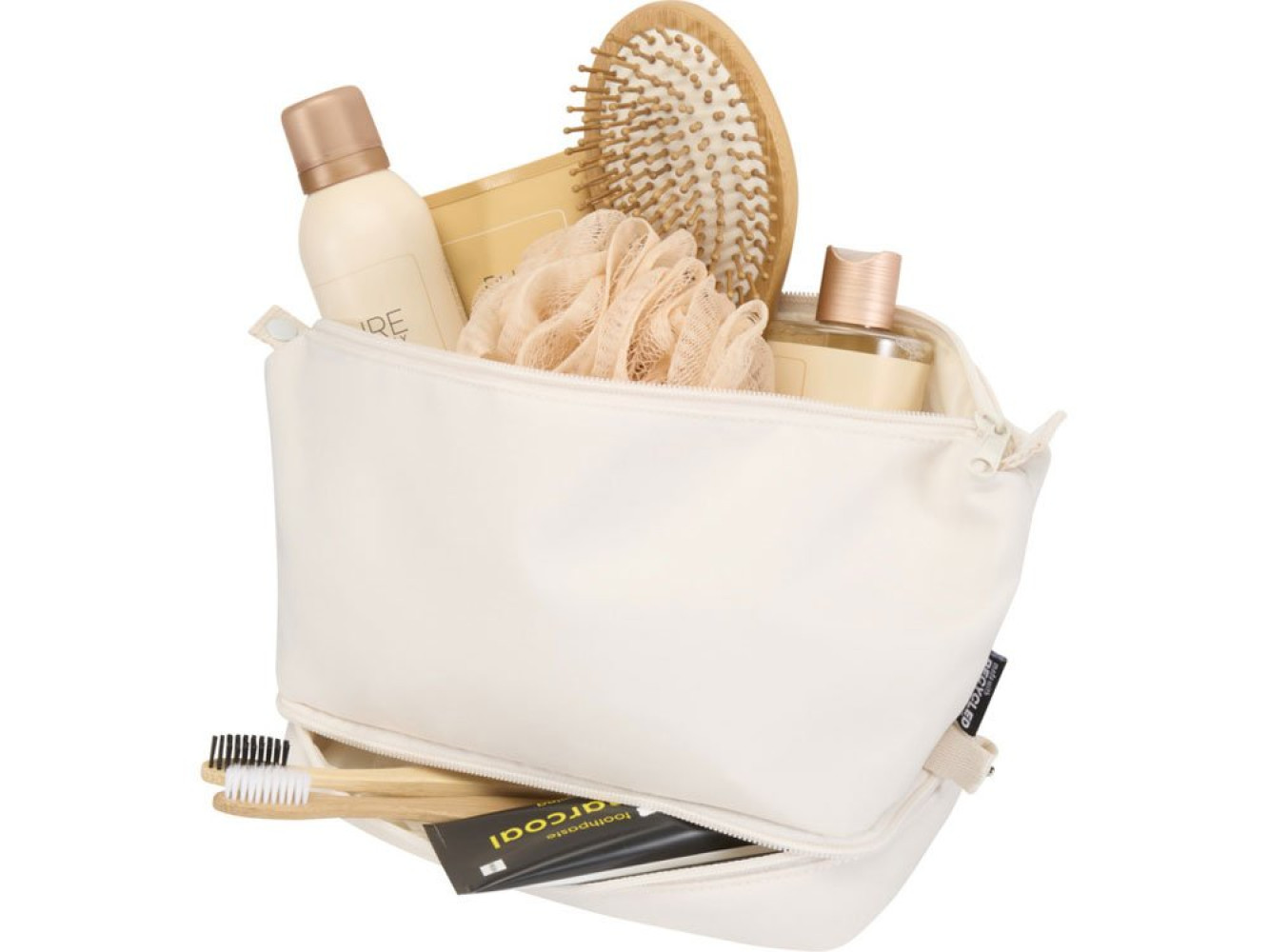Дорожная косметичка Trip Aware™ из переработанных материалов — это компактная, структурированная сумка, предназначенная для аккуратного хранения личных вещей во время путешествия. Изготовленная из полиэстера саржевого переплетения плотностью 290D с трикотажной основой и подкладкой из материала RPET плотностью 210D/PU, она отличается лаконичным дизайном и практичными отделениями. Основное отделение оснащено внутренним карманом на молнии для мелких предметов, а нижнее отделение в форме раскладушки позволяет разделить предметы первой необходимости для более легкого доступа и лучшей организации. Каждая сумка также поставляется с индикатором Aware™. Эта инновационная функция позволяет пользователям отслеживать происхождение и путь своего товара с помощью QR-кода, повышая прозрачность цепочки поставок и способствуя более прочной связи между продуктом и процессом его производства. Объем: 6 литров.