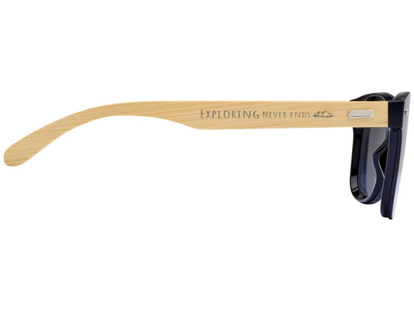 Стильные солнцезащитные очки с цветными линзами и бамбуковыми дужками. Линзы УФ 400 обеспечивают защиту от вредного ультрафиолетового излучения. Соответствует стандарту безопасности ЕС EN12312-1. Бамбук, пластик PC.