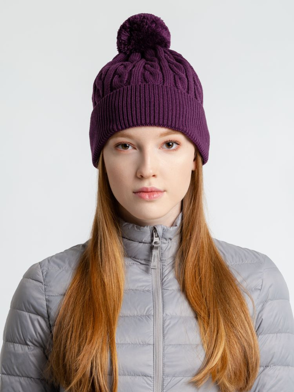 Однослойная шапка фактурной вязки с отворотом.