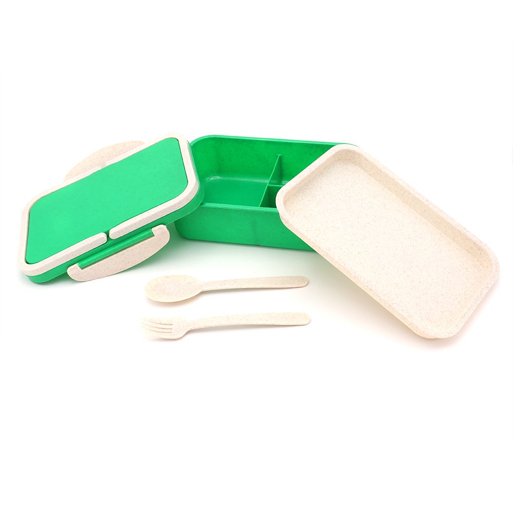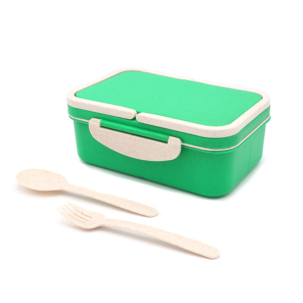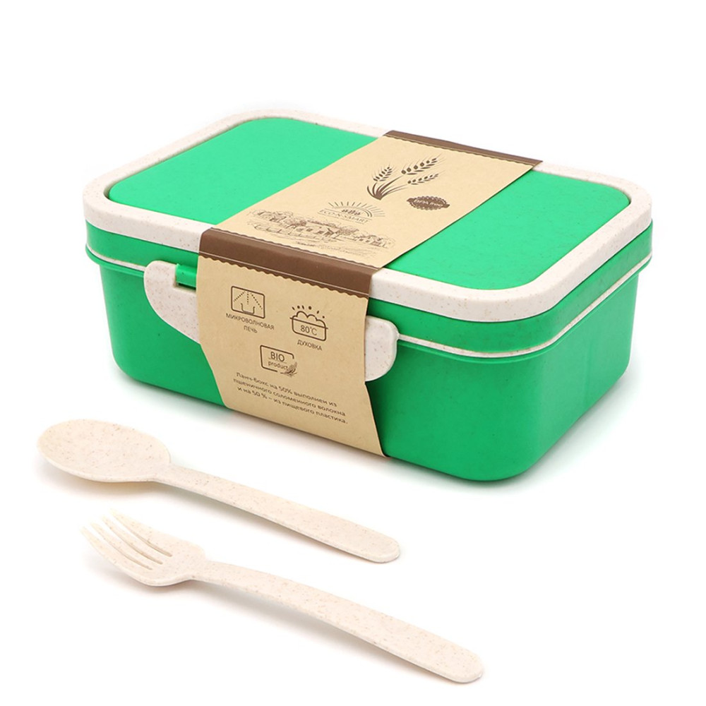 и столовыми приборами (вилка и ложка). Контейнер подойдёт