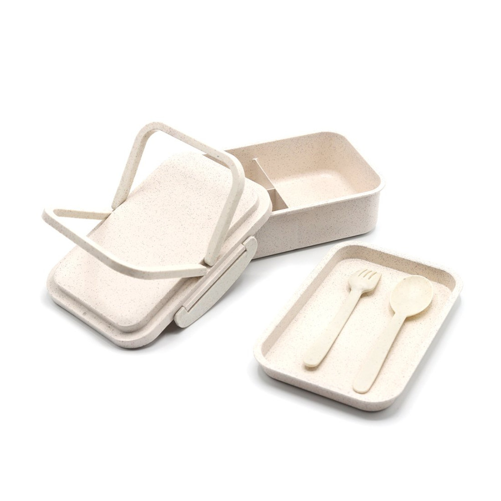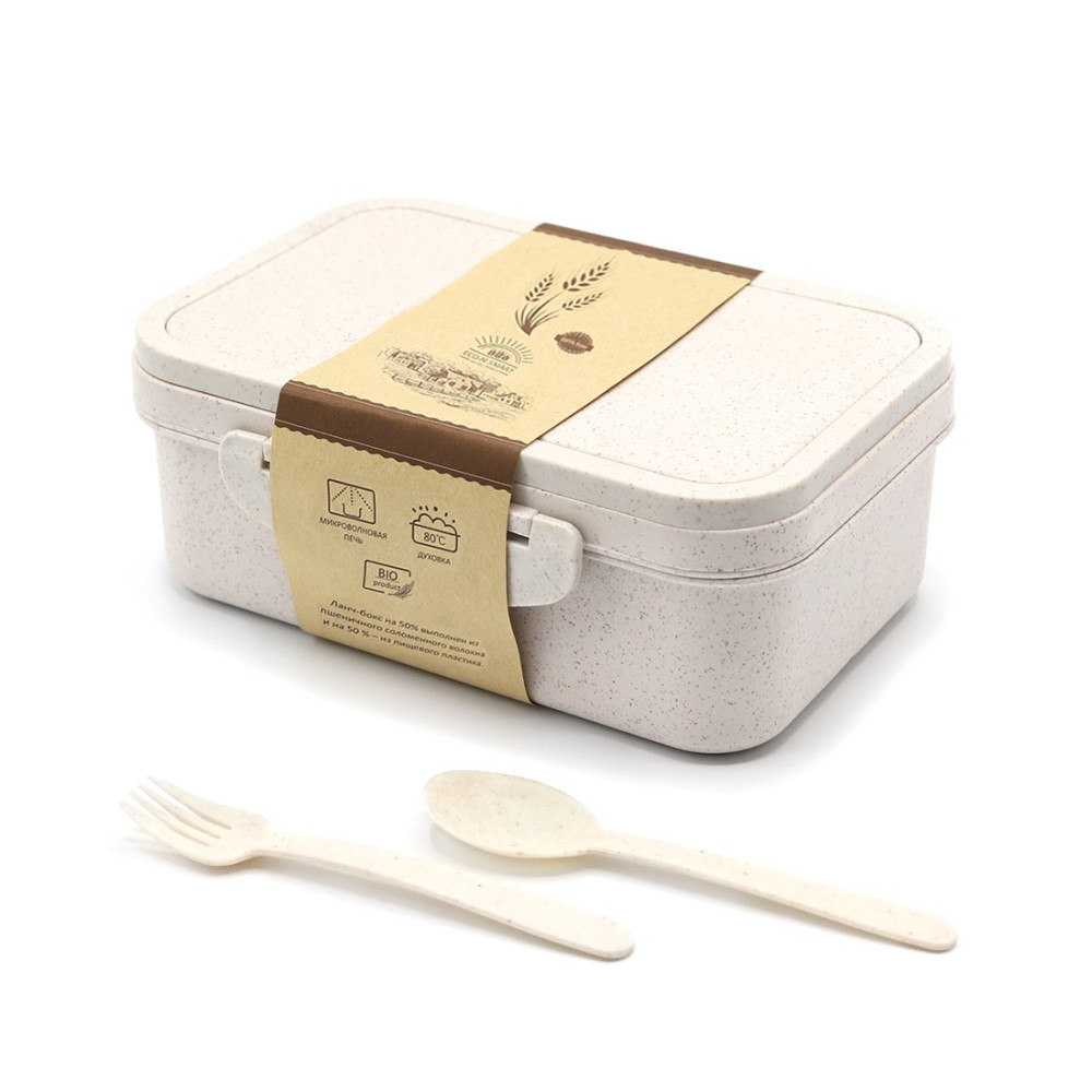 и столовыми приборами (вилка и ложка). Контейнер подойдёт