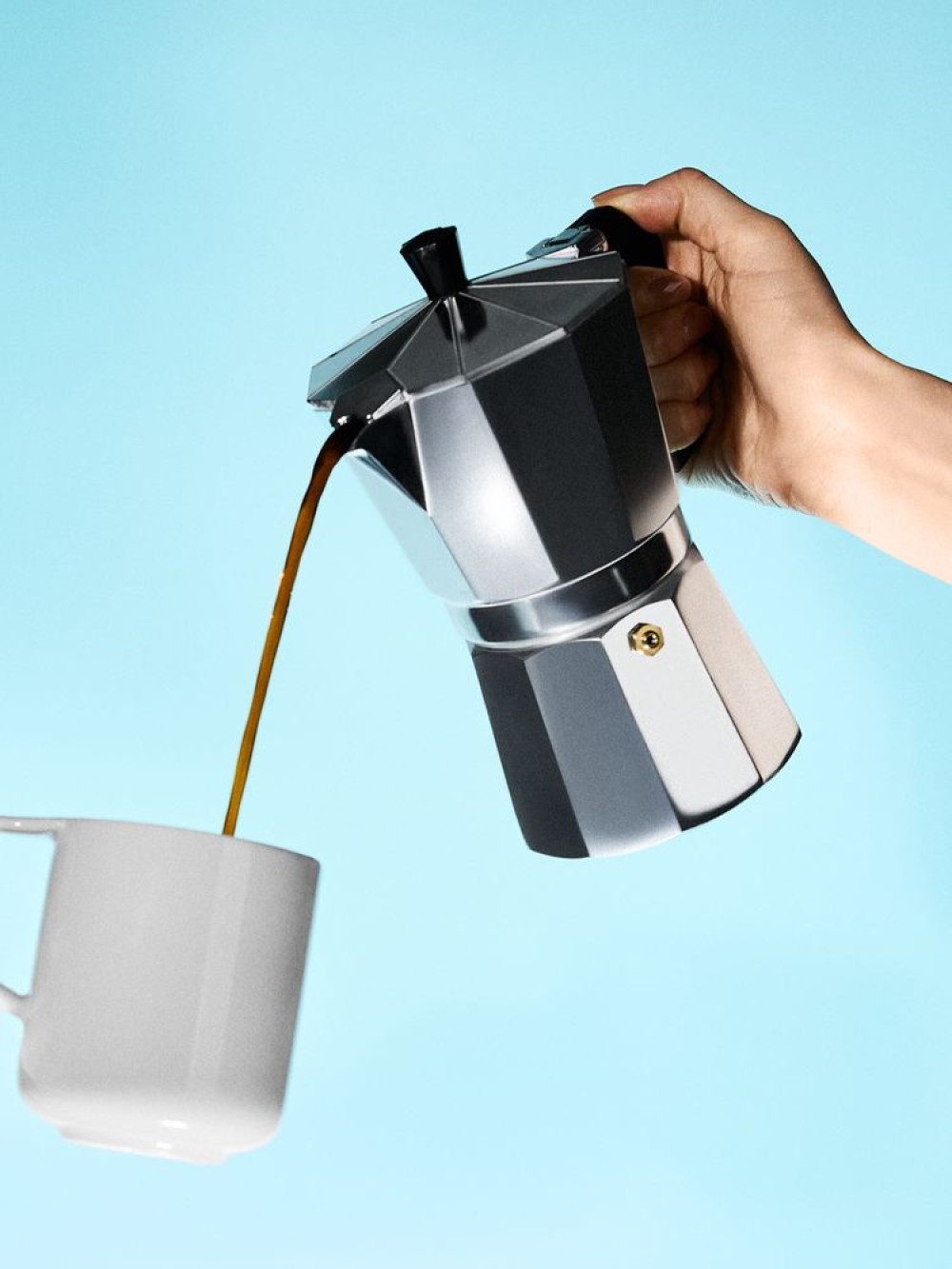Напиток в гейзерной кофеварке получается плотным, с сиропистым