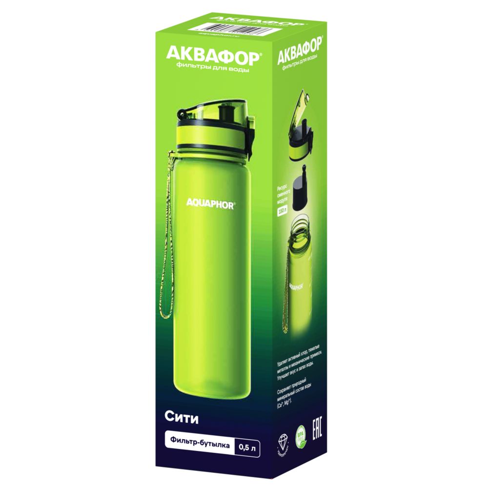 Фильтр-бутылка «Аквафор Сити» со сменным картриджем предназначена для доочистки холодной водопроводной воды. Картридж удаляет из воды активный хлор, тяжелые металлы, токсины и аллергены, которые часто встречаются в централизованных системах водоснабжения, а также улучшает вкус и запах воды.