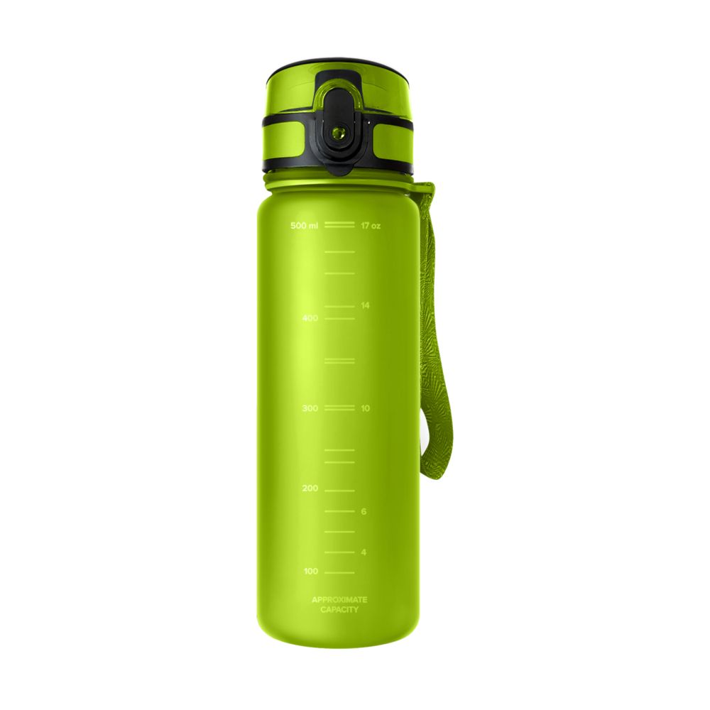 Матовое бархатистое покрытие бутылки приятно на ощупь, широкий ремешок дополнительно фиксирует бутылку во время использования, защитный колпачок не даст воде пролиться в сумке.