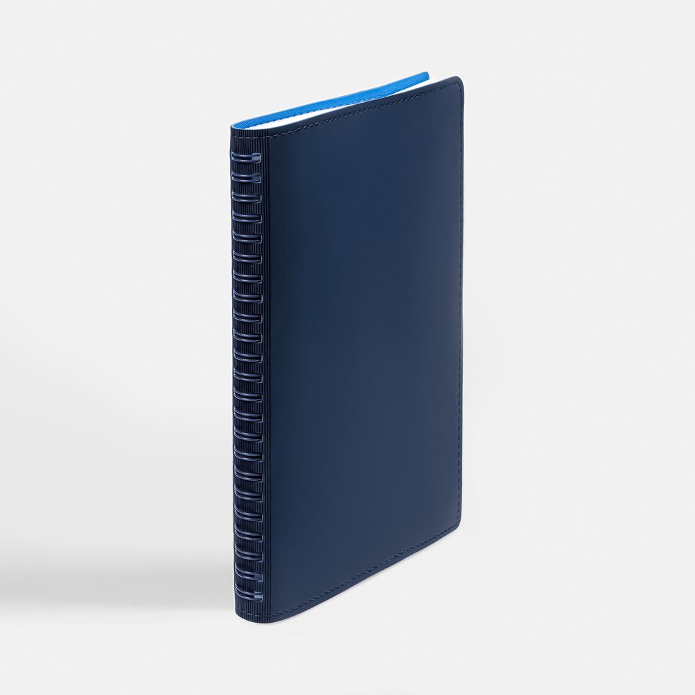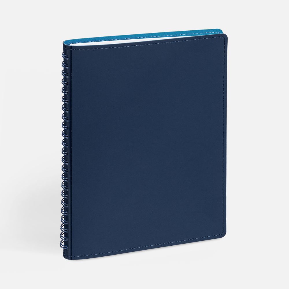 Ежедневник с гибкой обложкой, выполнен из материалов Soft Touch, синий и Nice Touch, голубой.