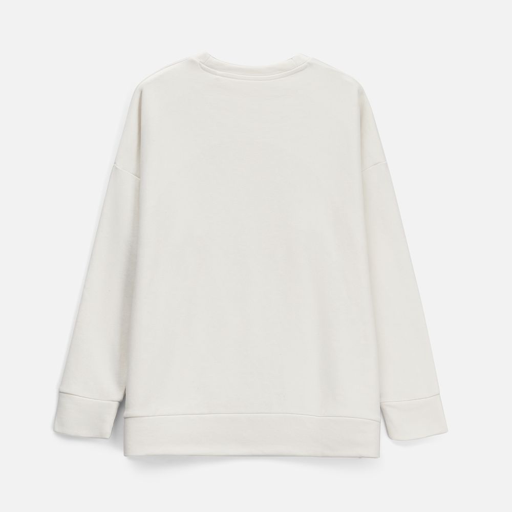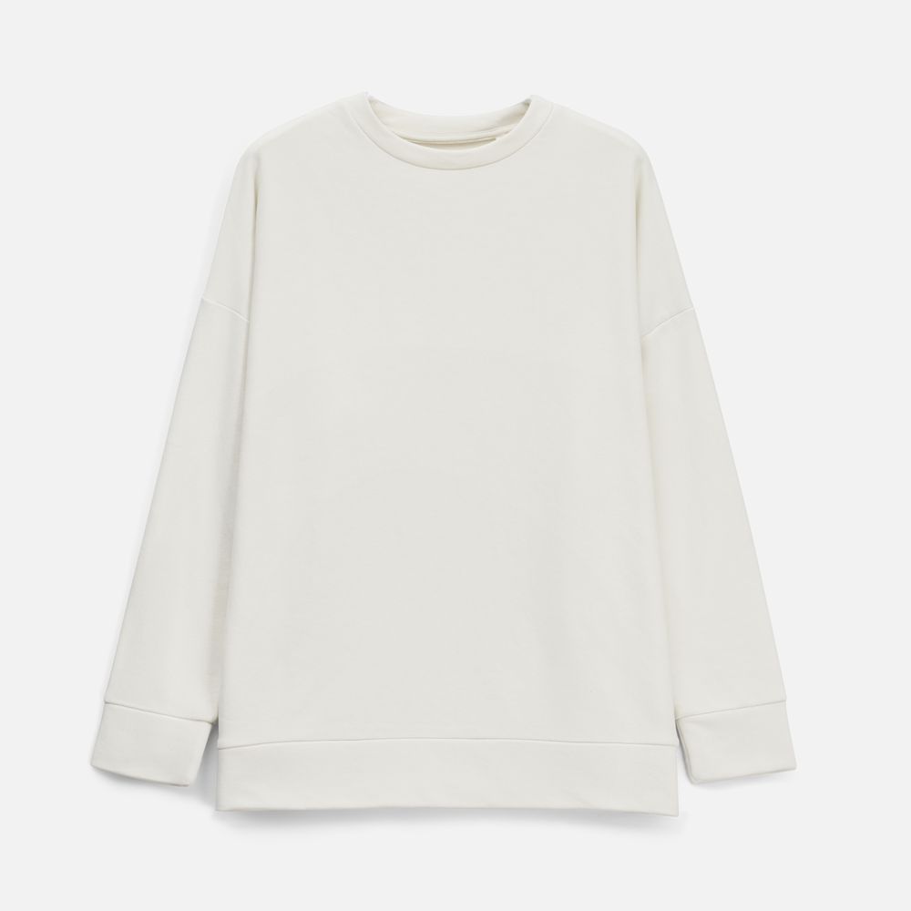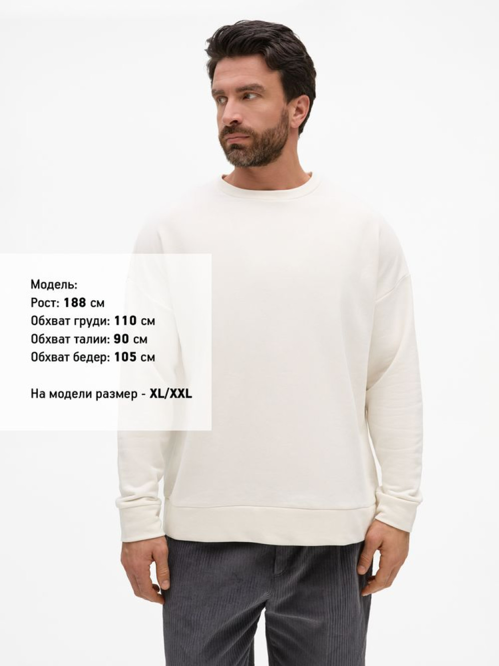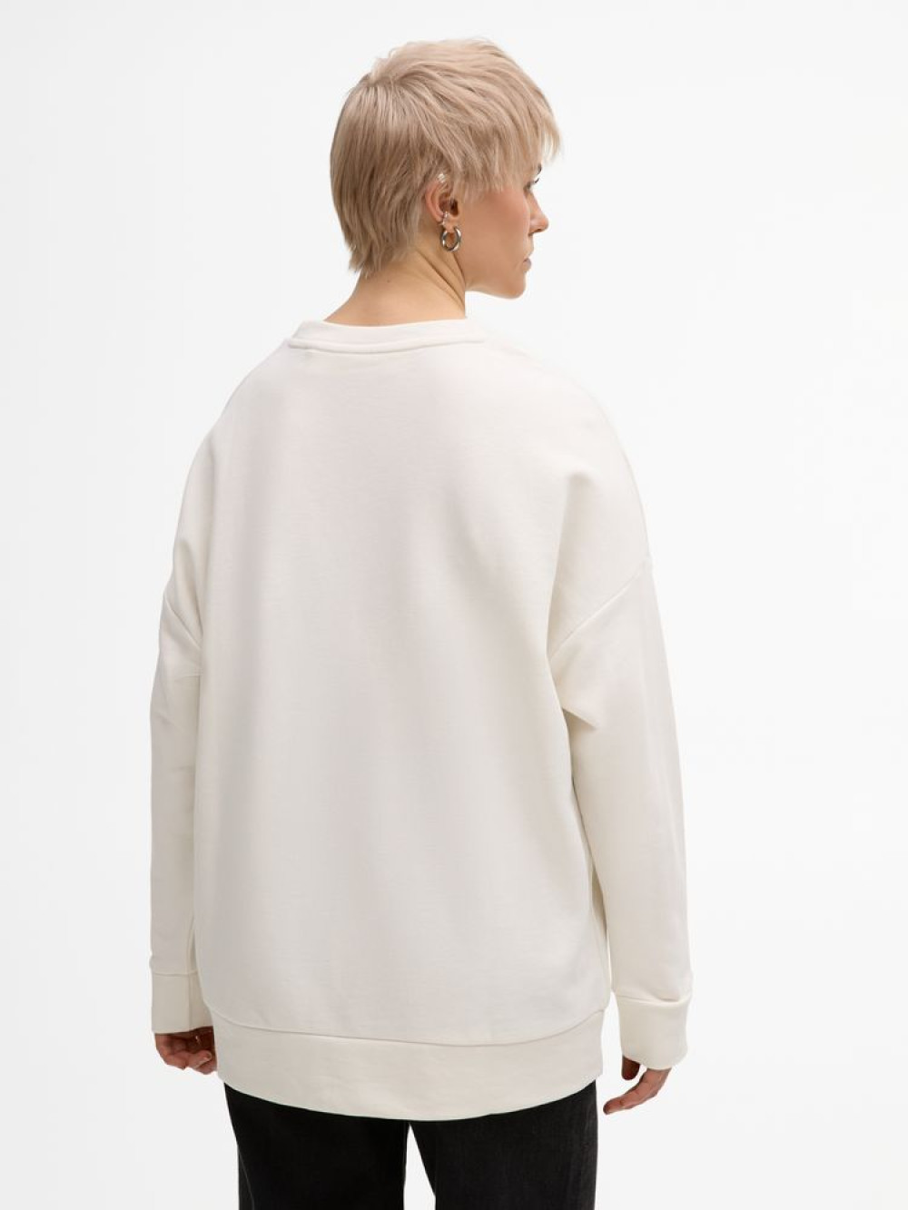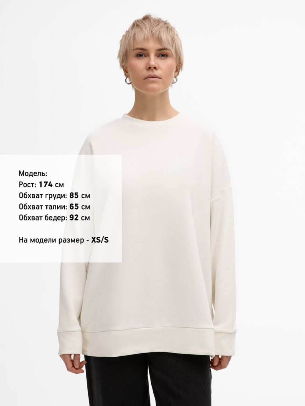 Свитшот унисекс свободной посадки со спущенным плечом.