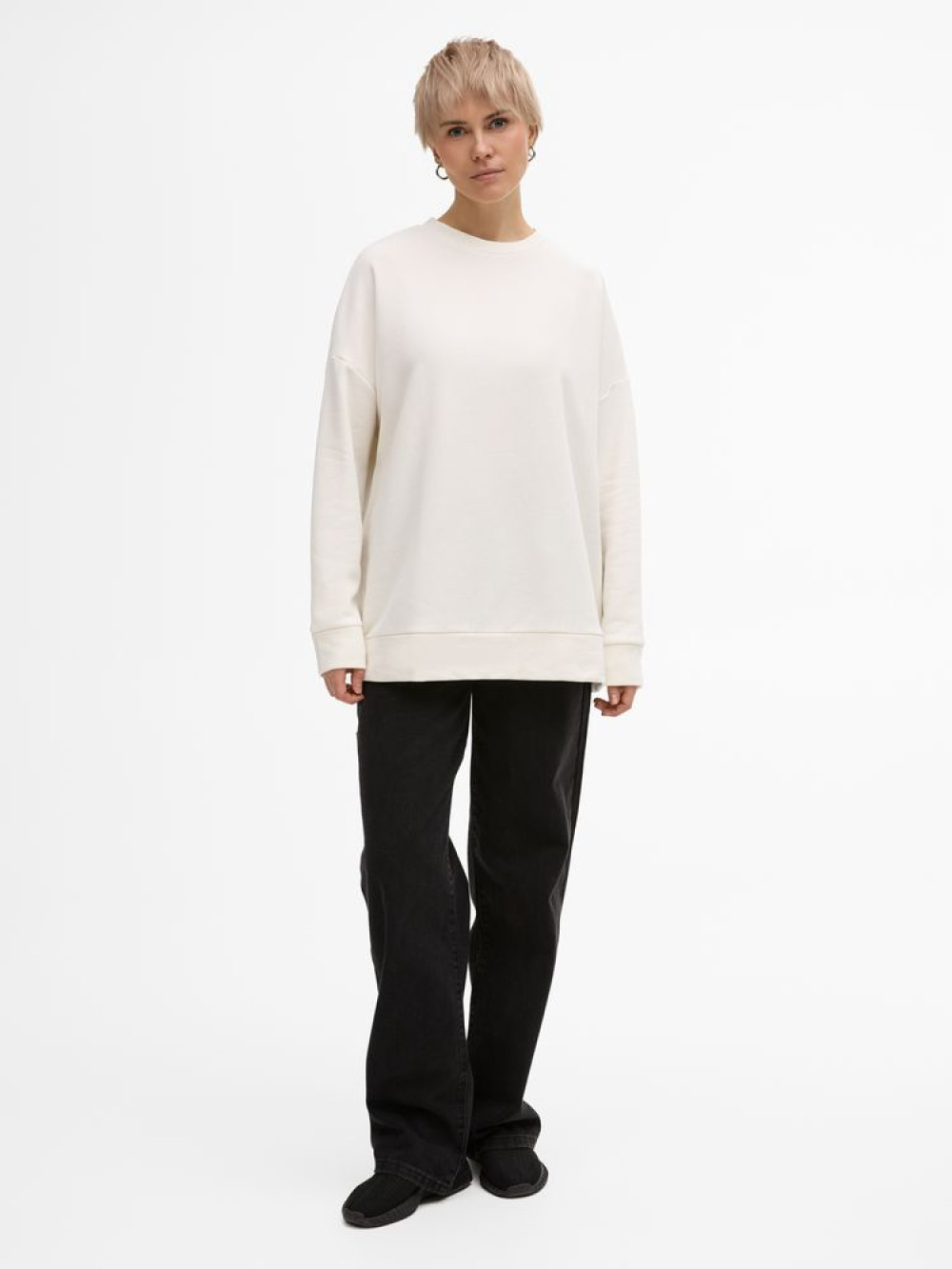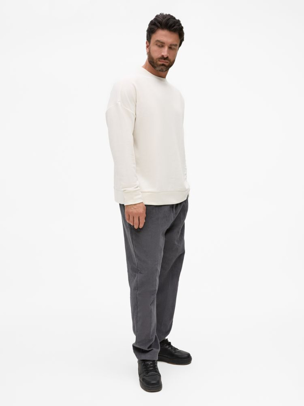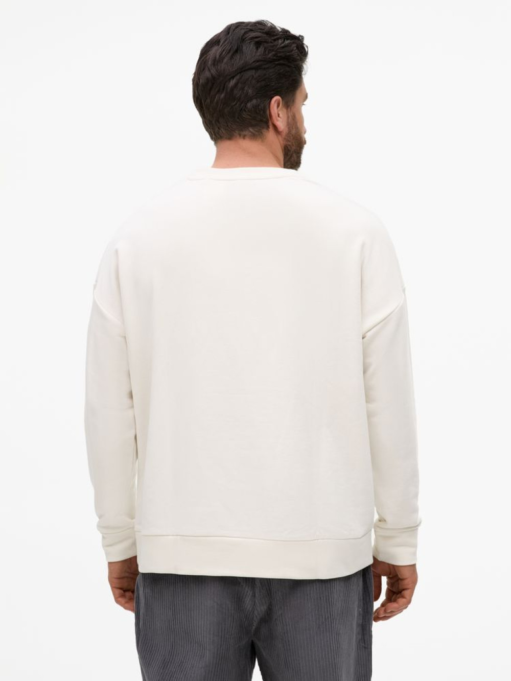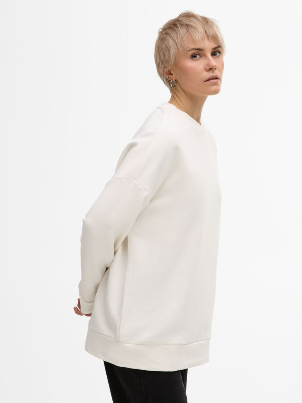 Свитшот унисекс свободной посадки со спущенным плечом.