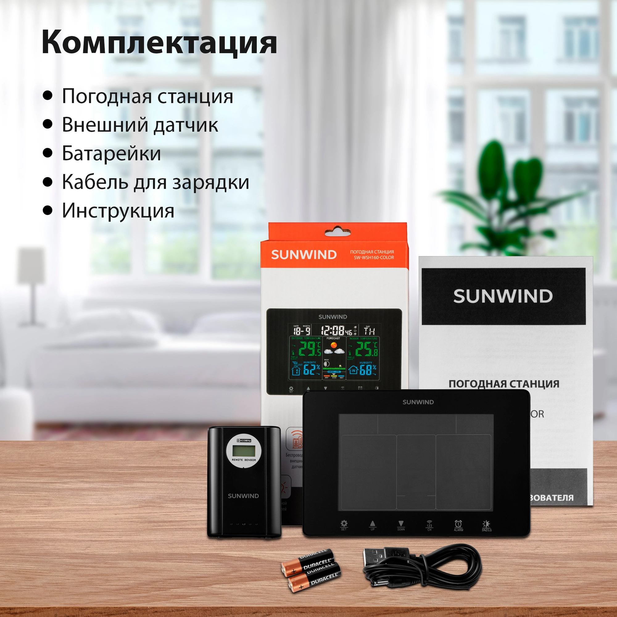 Погодная станция SunWind SW-WSH160-COLOR черный