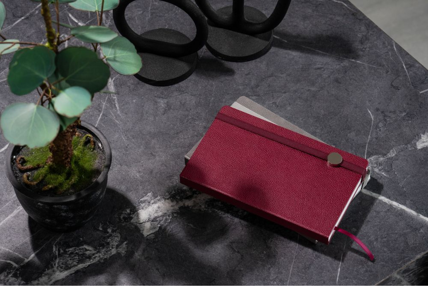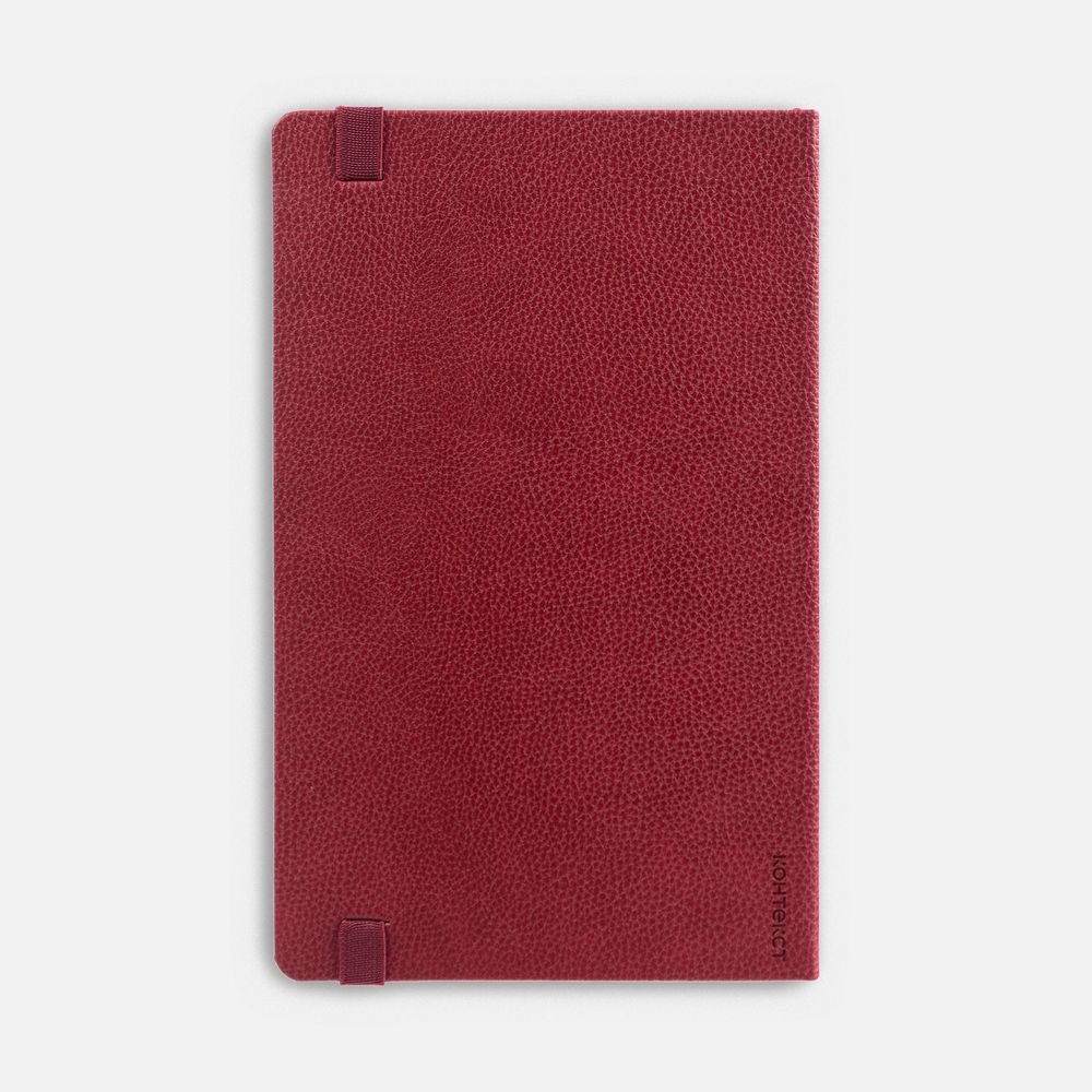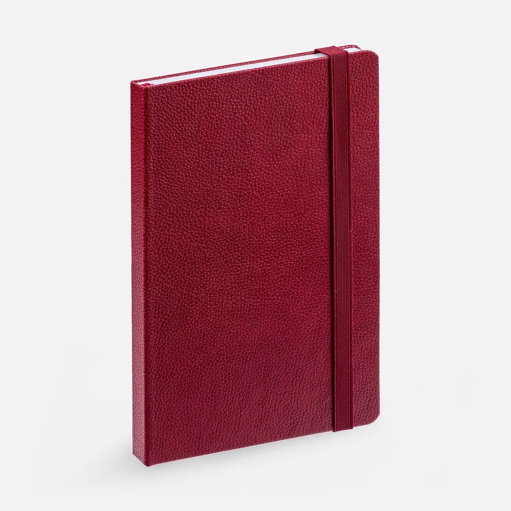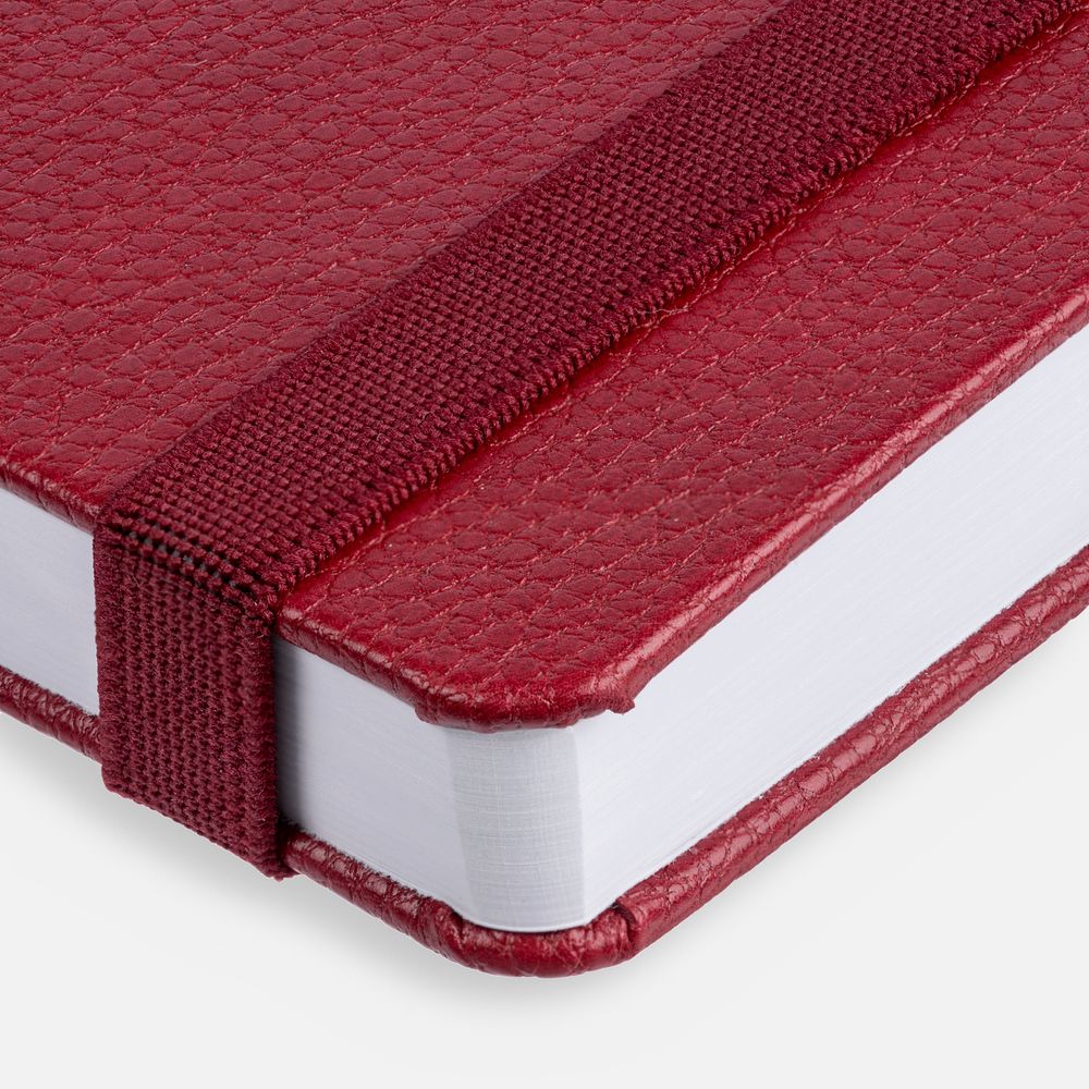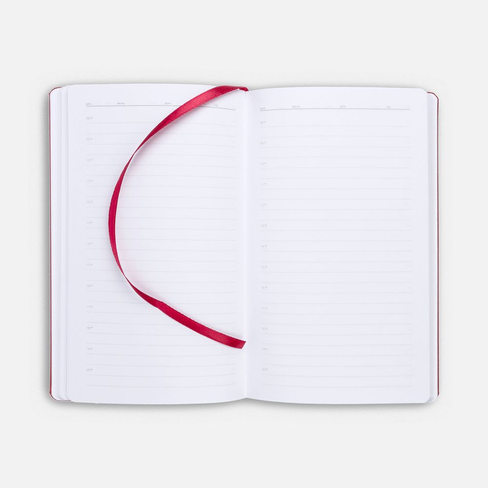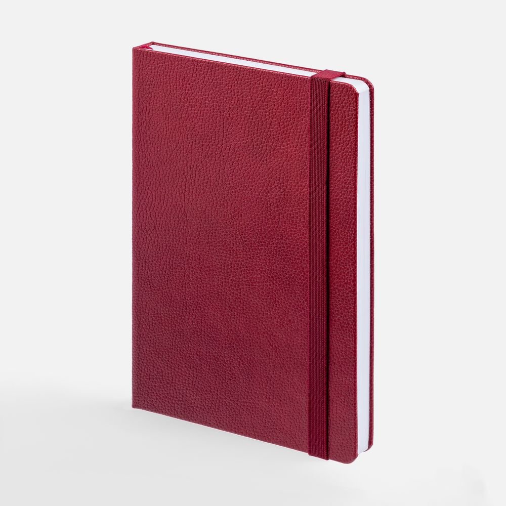 Ежедневник с твердой обложкой, выполнен из материала LaFite, красный РР, дополнен резинкой и ляссе в цвет обложки.