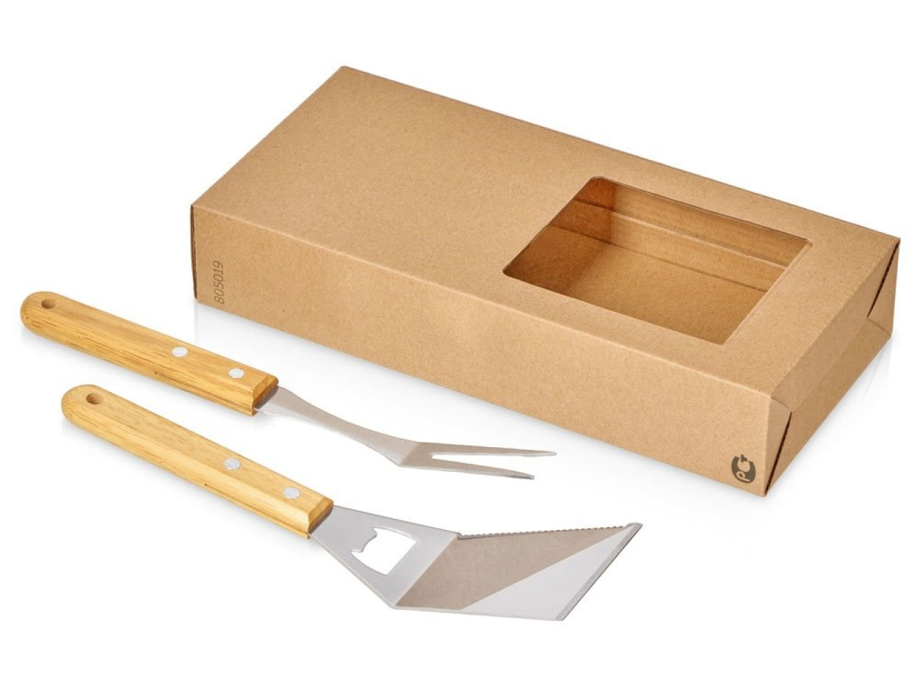 Приборы выполнены из нержавеющей стали, ручки — из дерева: не