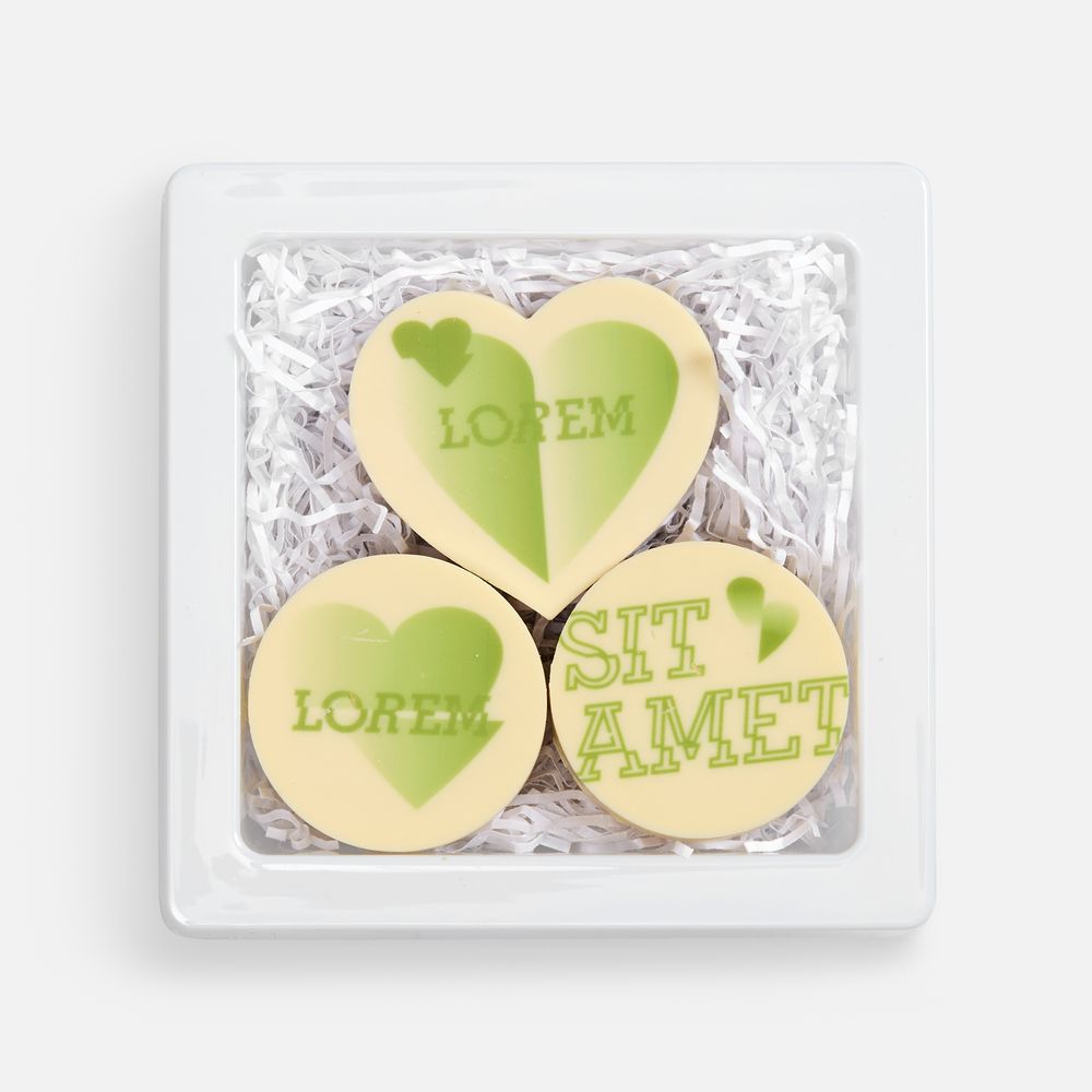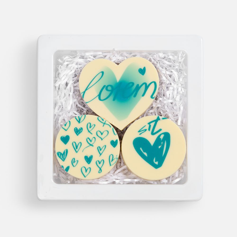 Набор из трех печений представлен в элегантной коробке с атласной