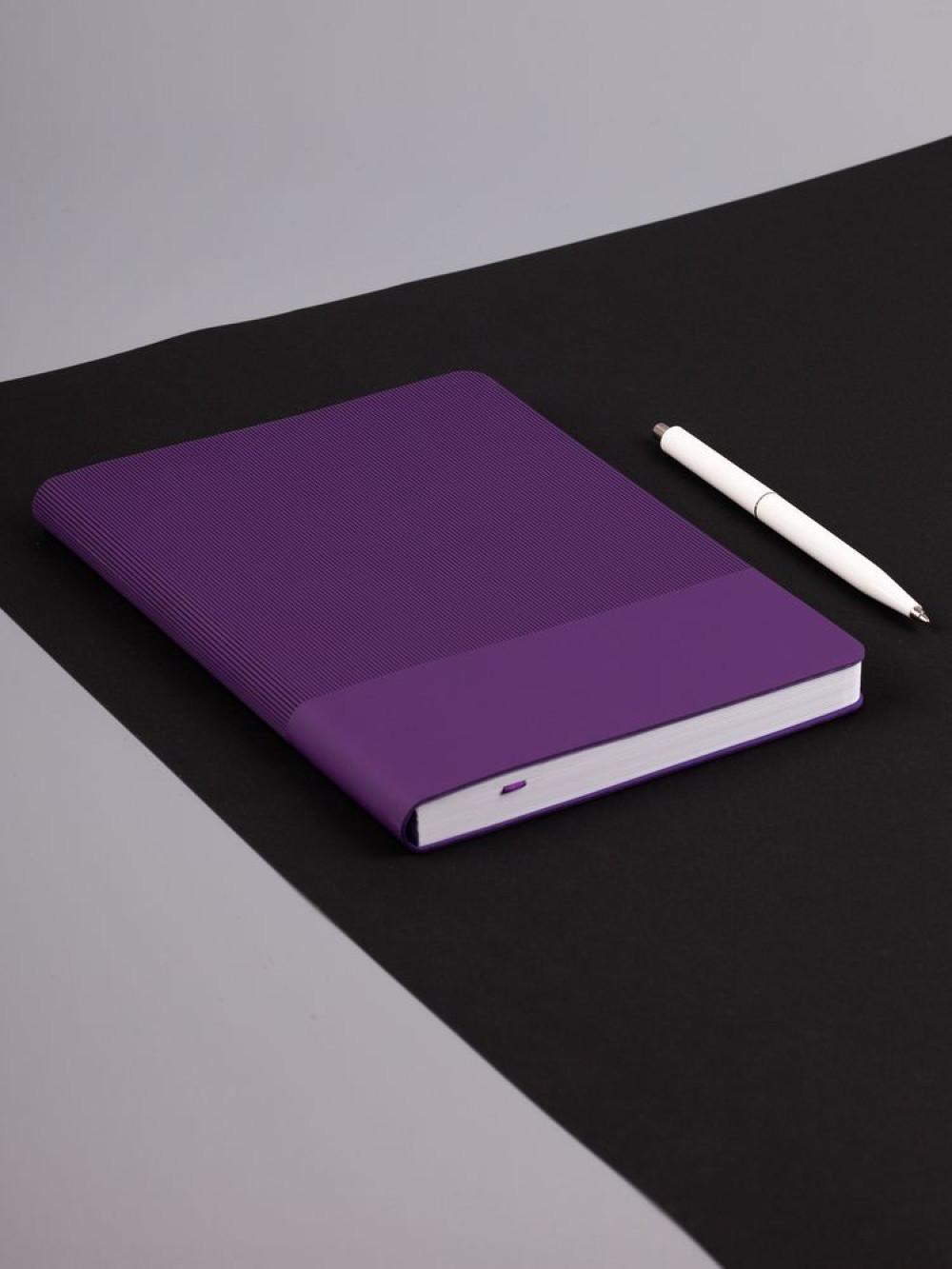 ляссе фиолетового цвета и фактурным тиснением обложки.