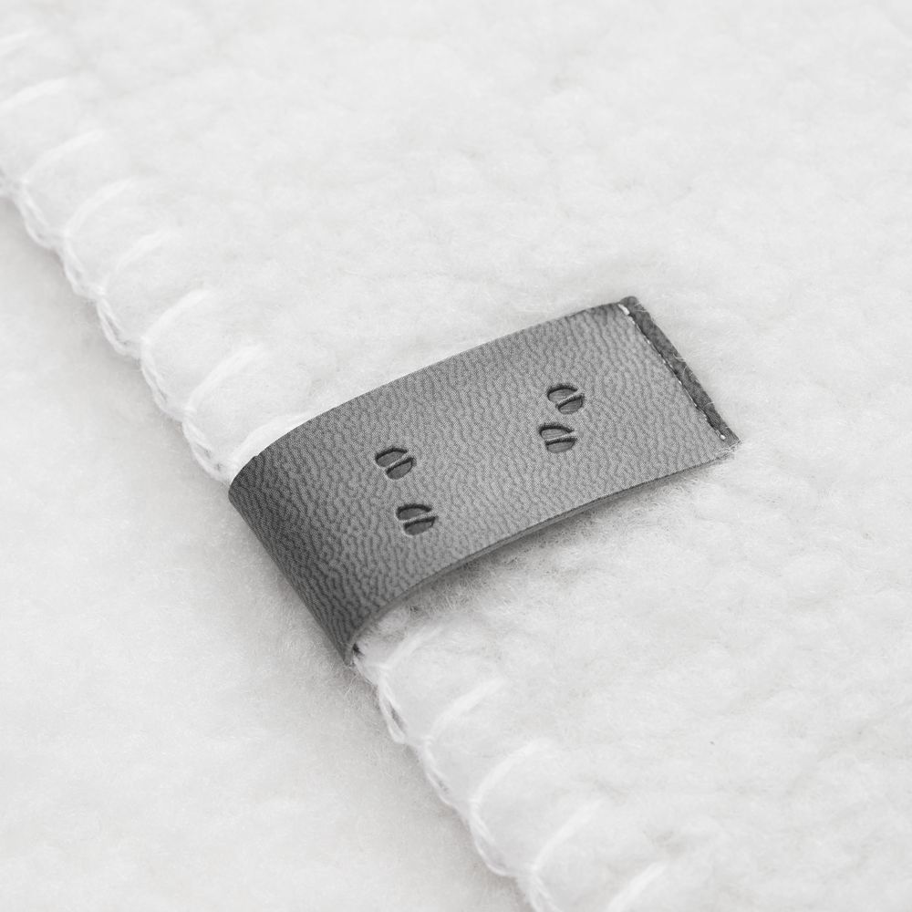 Лейбл пришивается по коротким сторонам с перегибом или без. Пришив по периметру возможен по запросу.