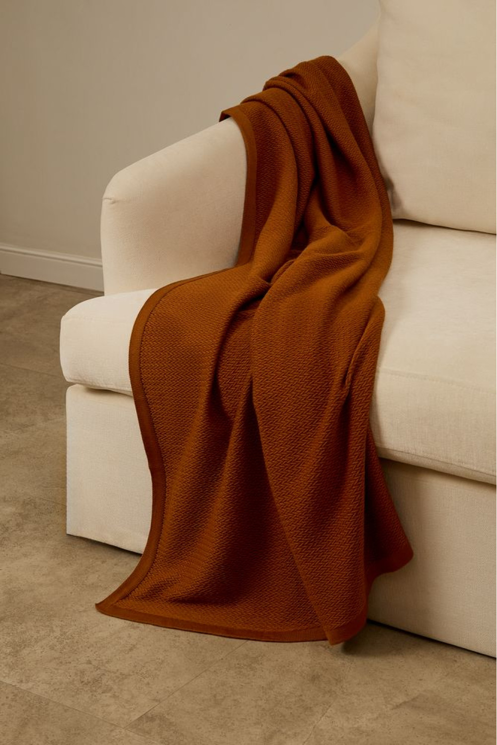 Плед из полушерстяной пряжи, поэтому прекрасно согревает и