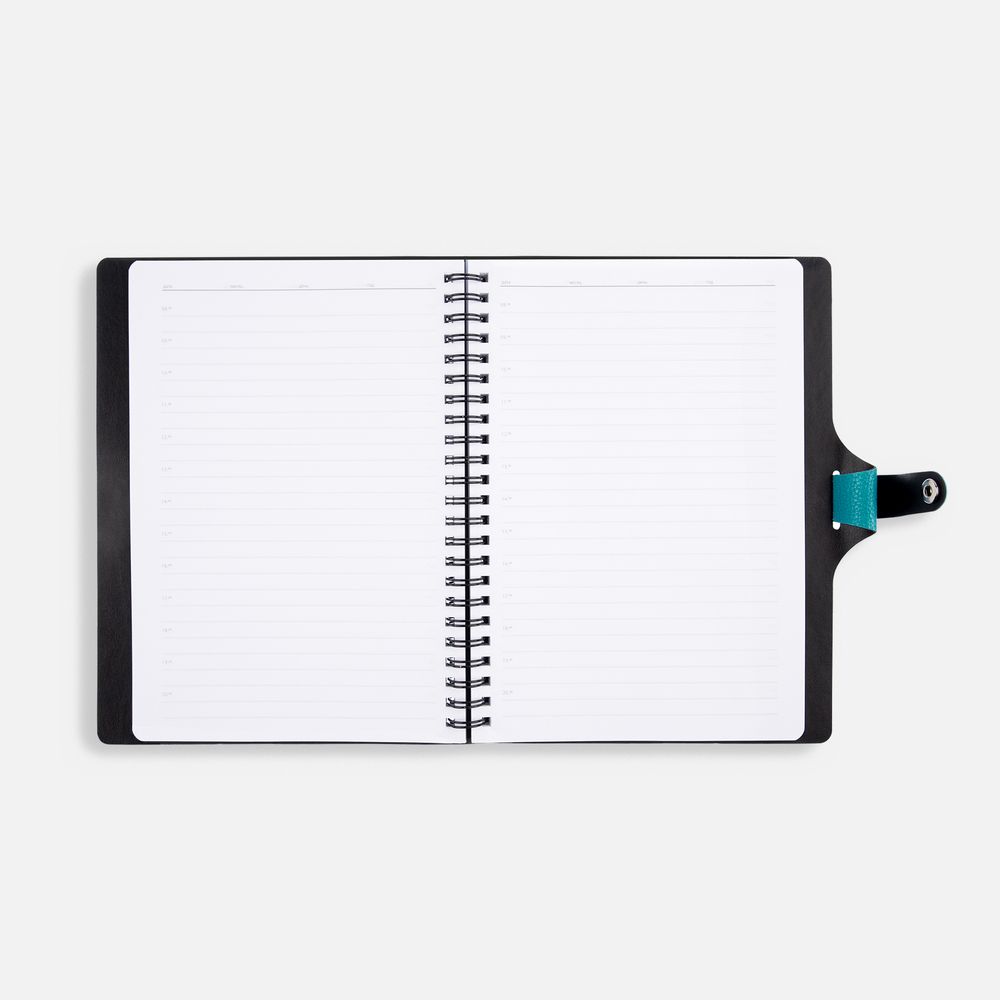 Ежедневник с гибкой обложкой, выполнен из материалов La Fite, цвет морской волны II и Waltz черный АА.