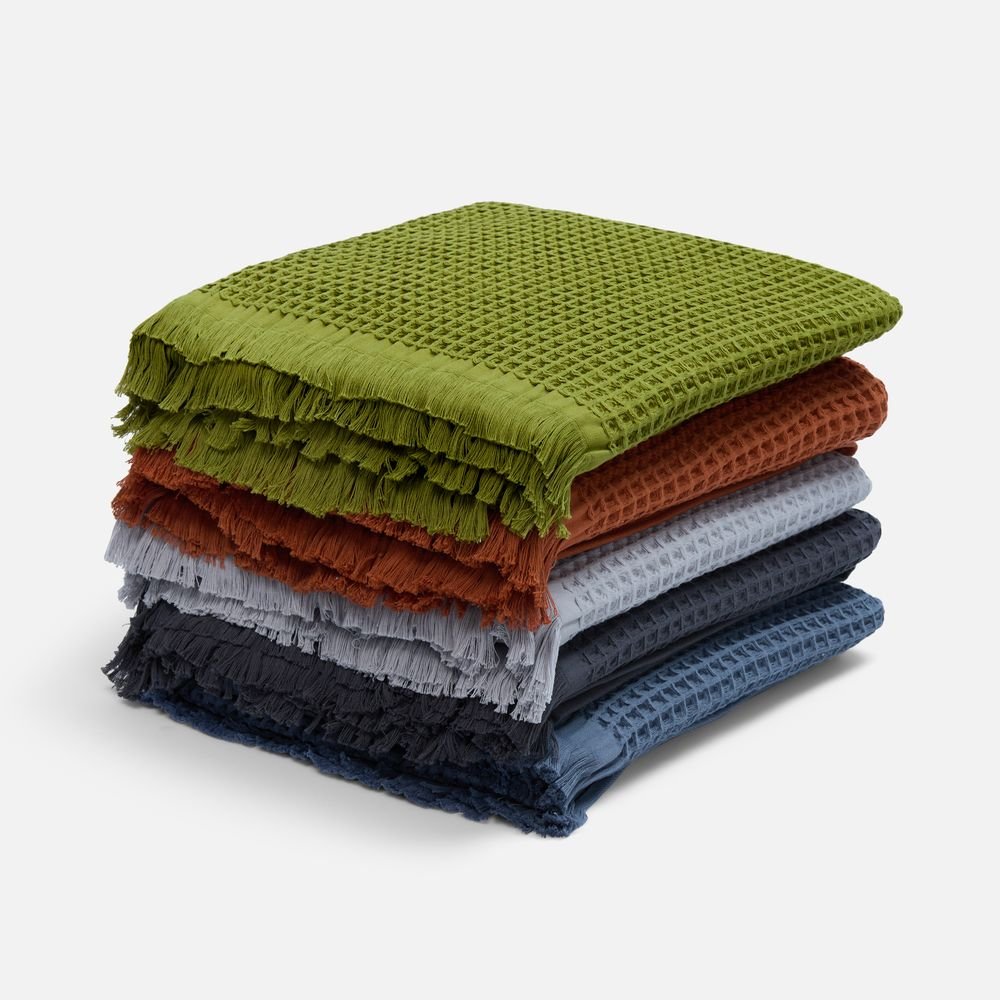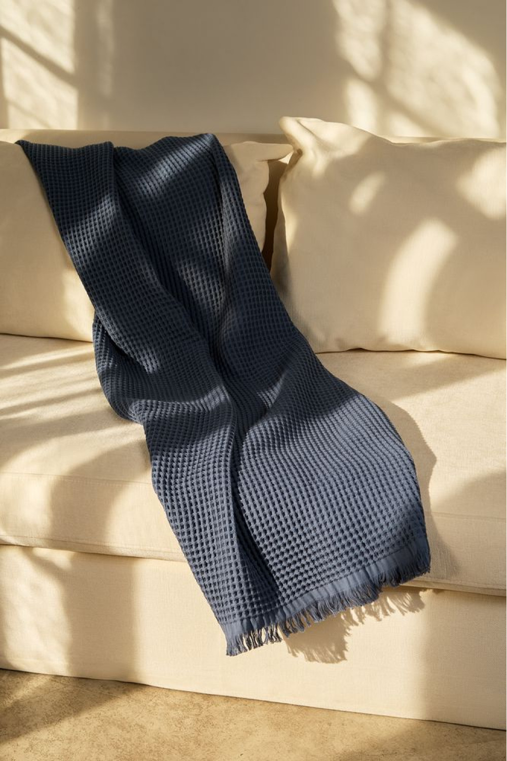 Создан из натурального хлопка с выраженной текстурой вафельного