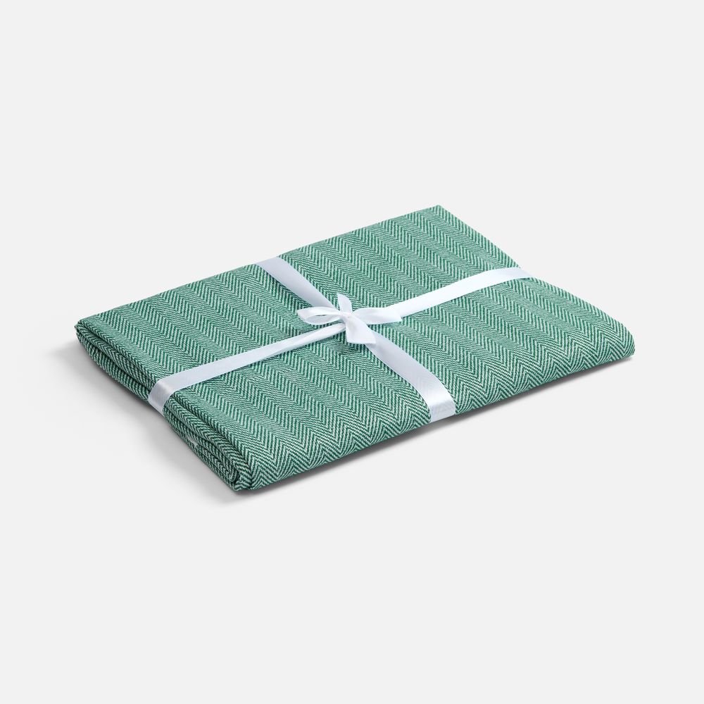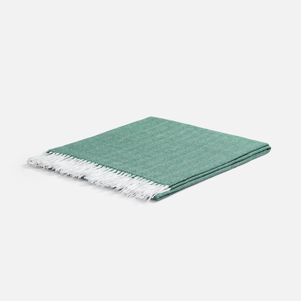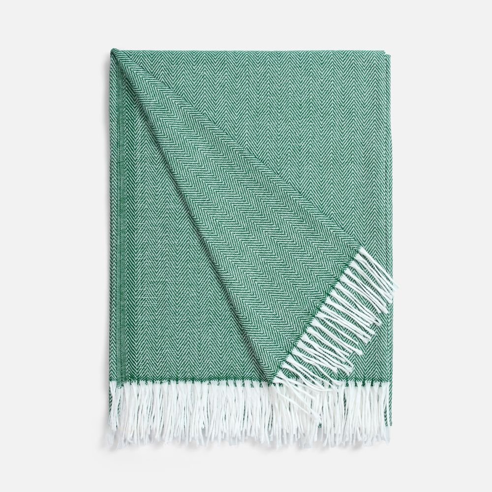 Классический рисунок «елочка» не слишком привлекает внимание, но в то же время добавляет изюминки. Смешанный состав пряжи продлевает срок службы и существенно облегчает уход за пледом.