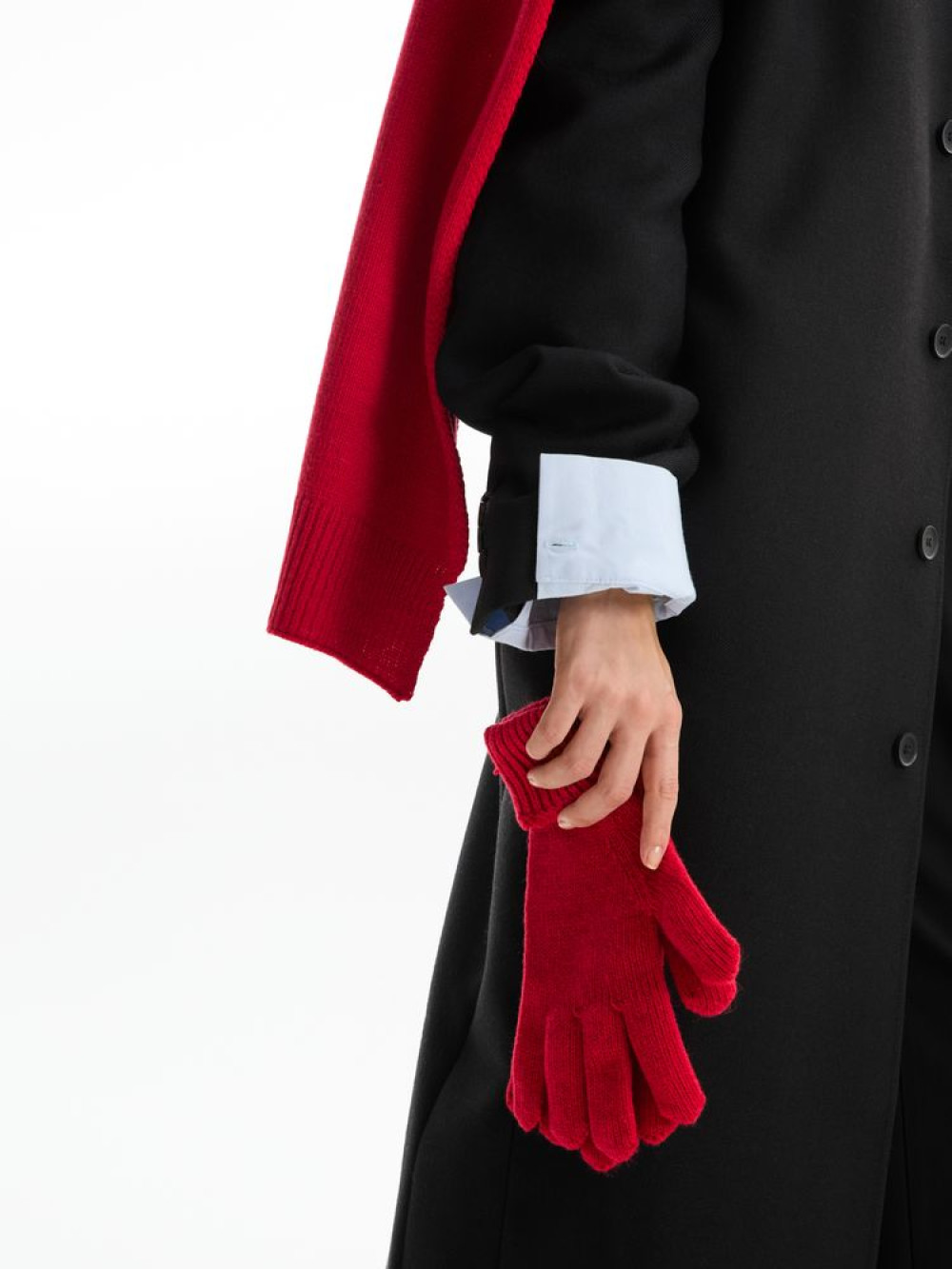 Перчатки из воздушной пряжи с высоким содержанием шерсти альпака и мериноса дополнят образ в стиле smart casual.