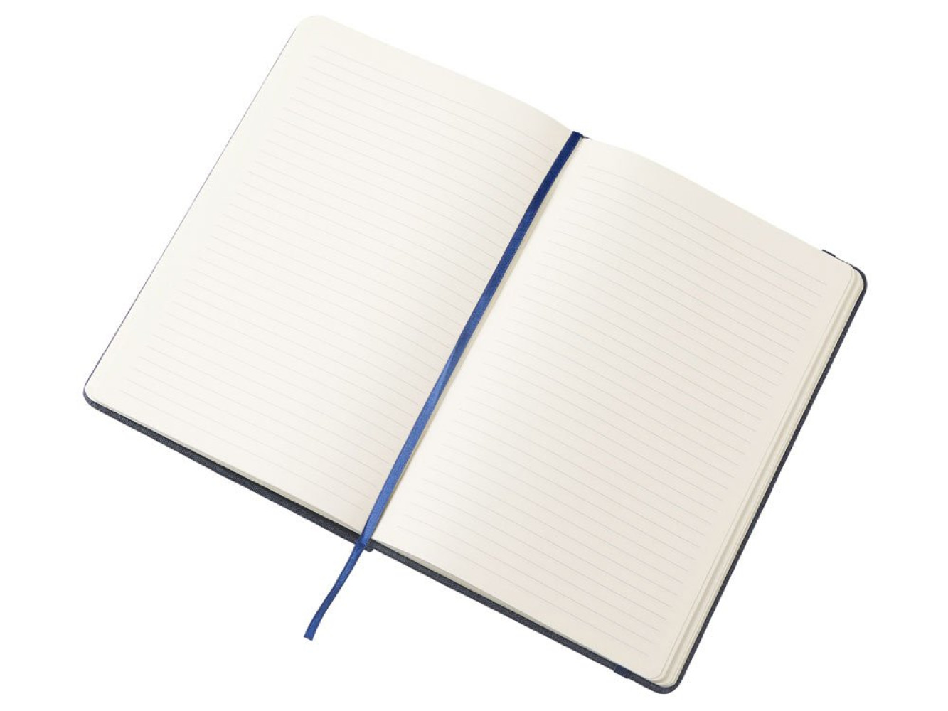 Блокнот в твердой обложке из rpet-пластика с металлической шариковой ручкой. В обложке магнитный держатель для ручки. Также верхняя часть обложки трансформируется в подставку для телефона. В блокноте 80 листов бумаги 70 г/м2.