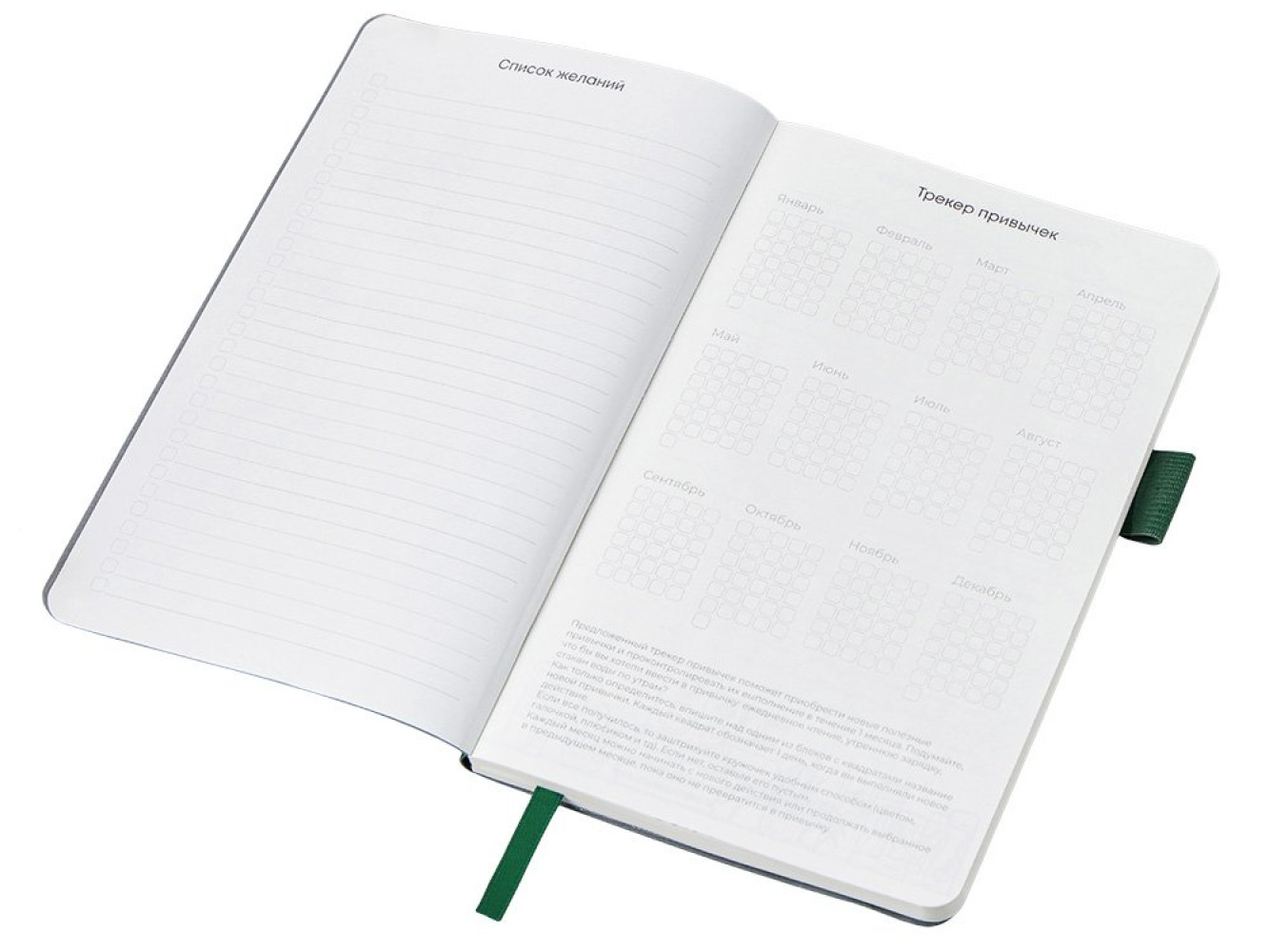 включает трекер привычек, списки книг и фильмов, а также 4 страницы