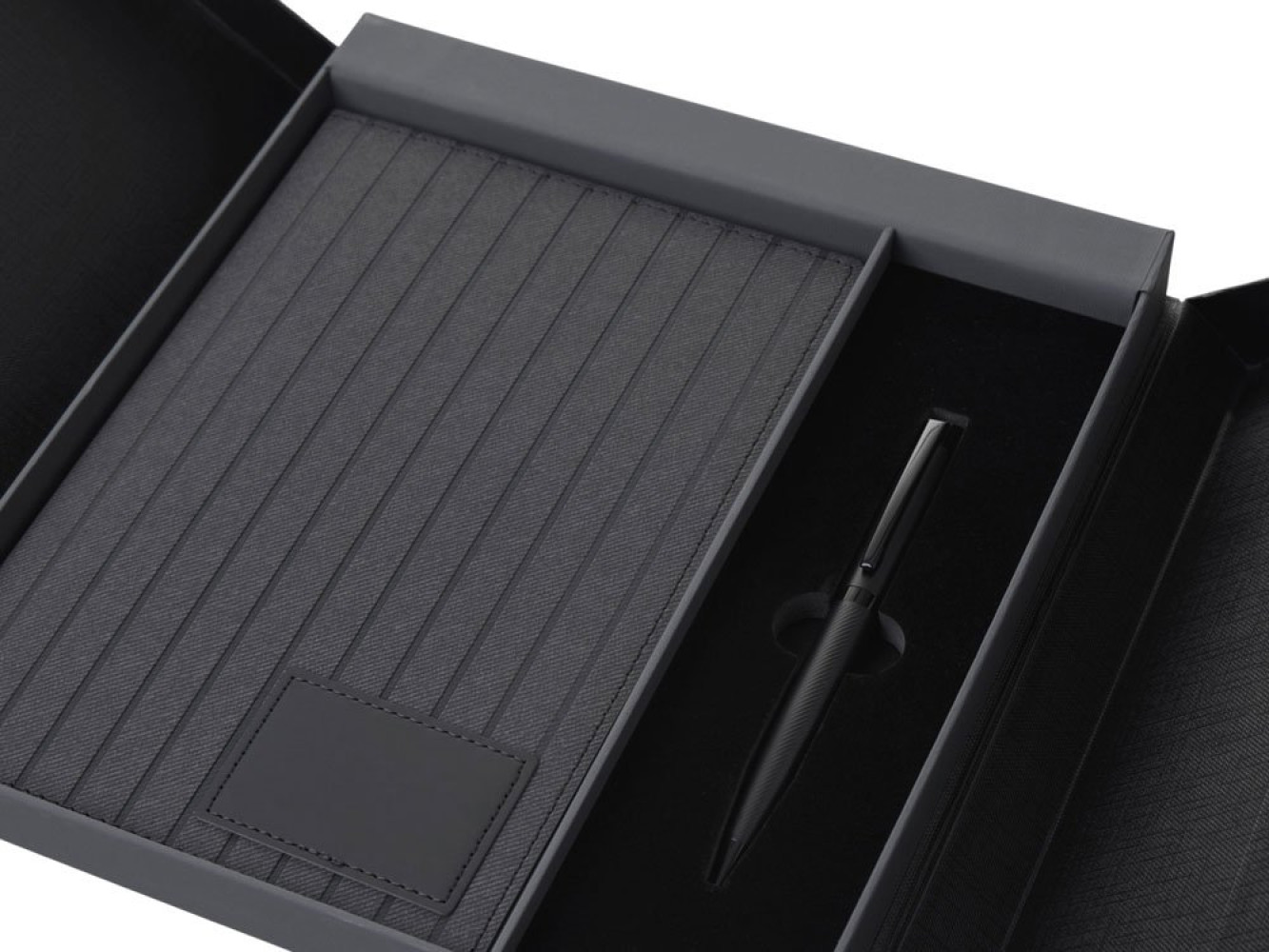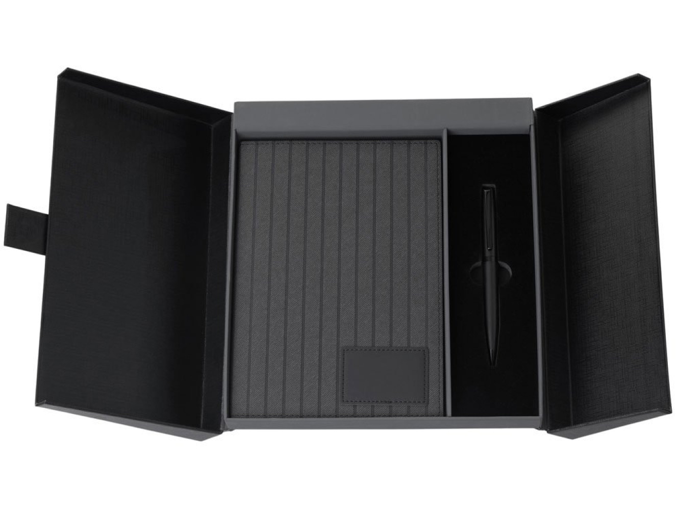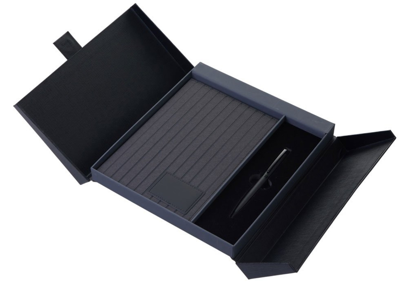 красивую коробку на магните. Внутри — блокнот в обложке из рифленой