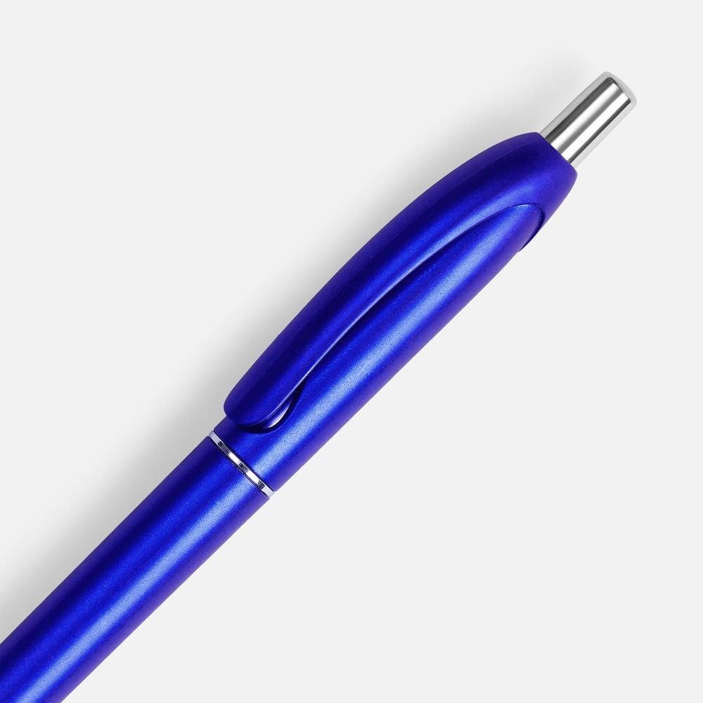 Шариковая пластиковая ручка в корпусе с эффектом «металлик» и серебристыми деталями. Приятная округлая форма клипа добавляет ручке плавности и объема.