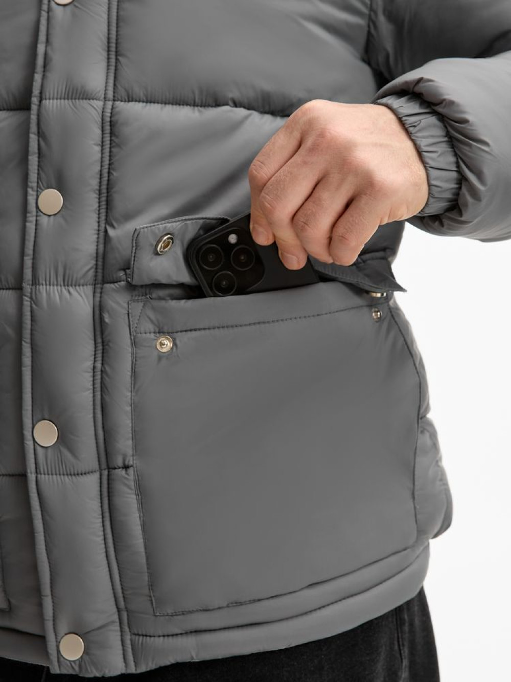 • Утепленные накладные карманы: два на кнопках с вертикальным входом и два с боковым — итого 4 кармана