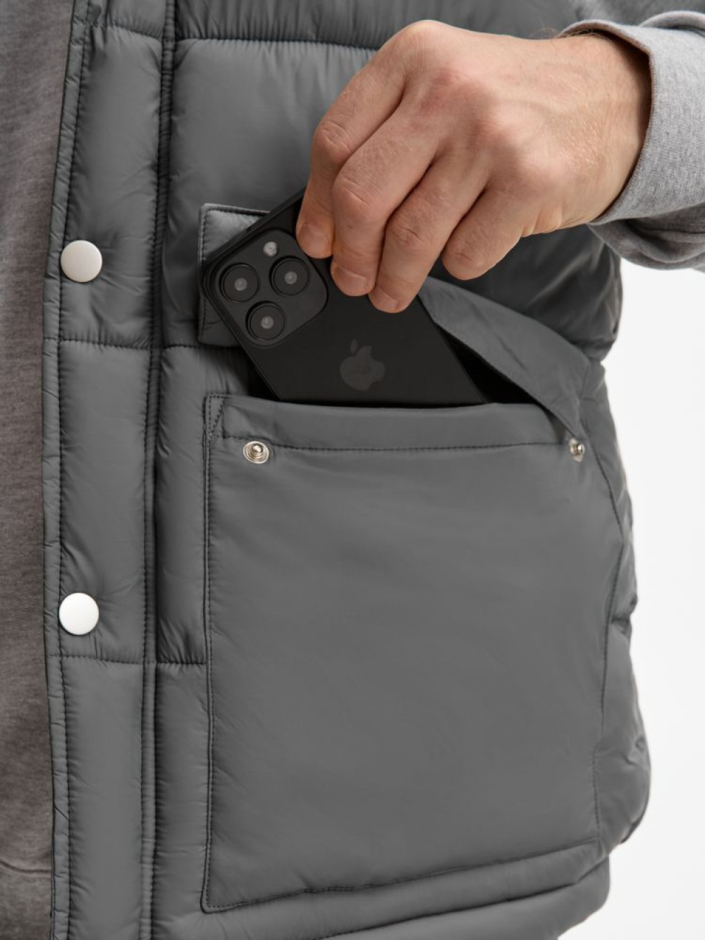• Утепленные накладные карманы: два на кнопках с вертикальным входом и два с боковым — итого 4 кармана