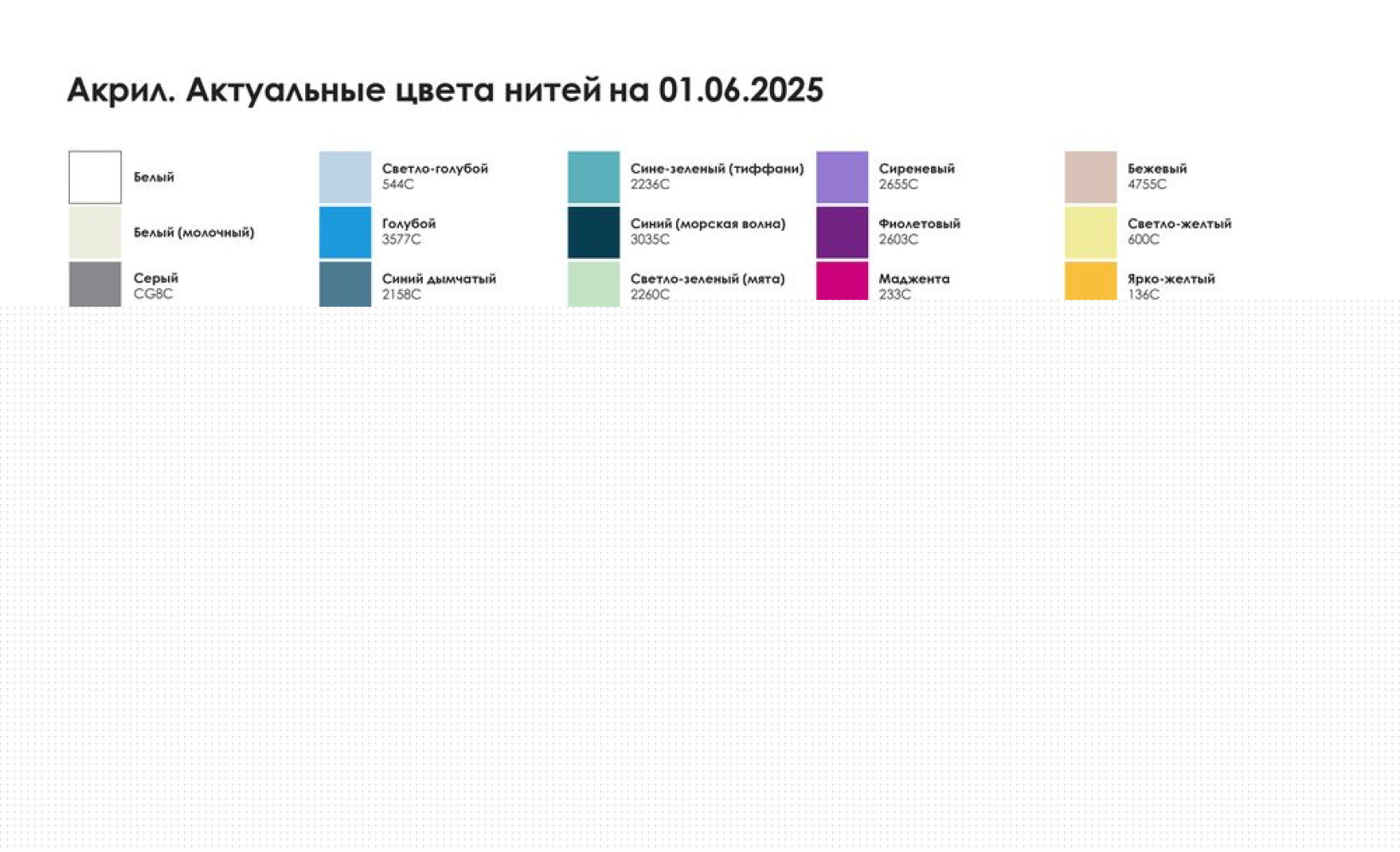 - Цвета изделия по таблице актуальных цветов (2-3 цвета).