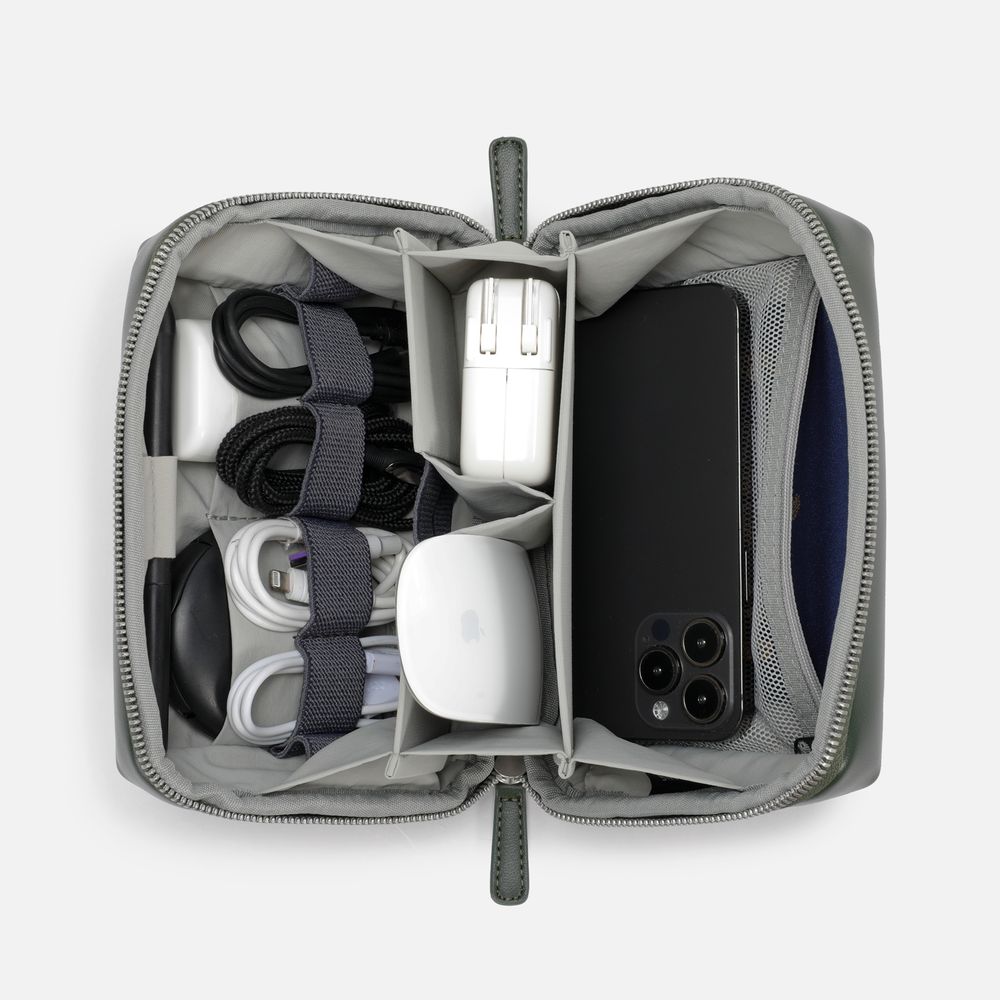 Идеален для косметики, гигиенических принадлежностей, лекарств, зарядных устройств, наушников, кабелей, внешнего аккумулятора и другой мелкой электроники — все аккуратно размещается внутри и легко находится благодаря панели с эластичными держателями и продуманной системе отделений. Внутренний карман на молнии позволяет надежно хранить флешки, сим-карты или другие мелкие предметы. Молния с широким раскрытием обеспечивает удобный доступ к содержимому.