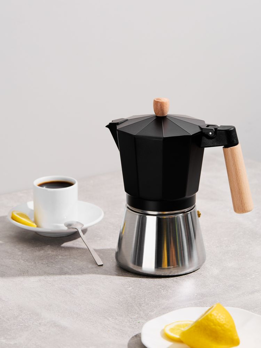Гейзерная кофеварка с элегантным дизайном и продуманной эргономикой