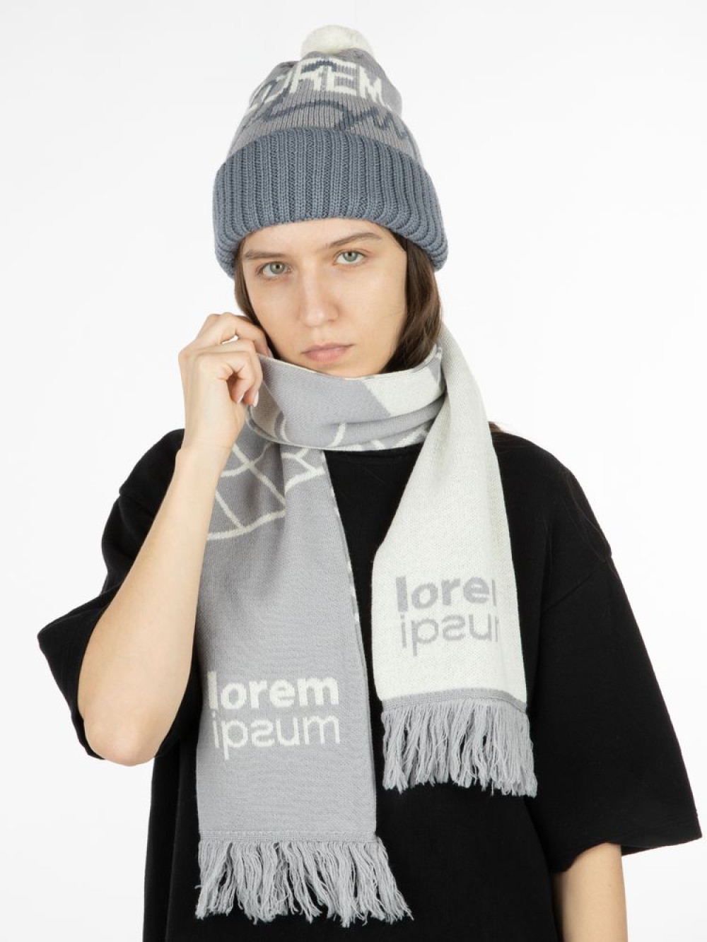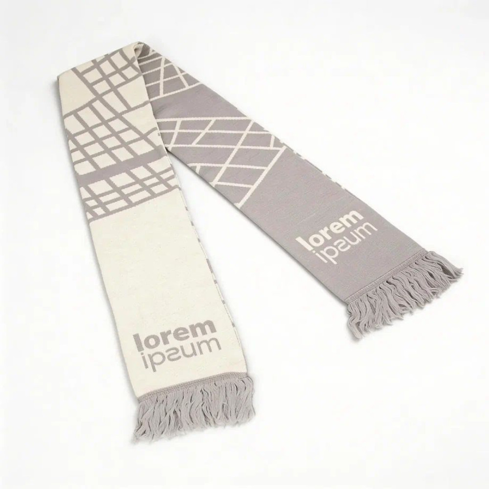 Шарф с вывязанным логотипом и индивидуальным рисунком в фирменной