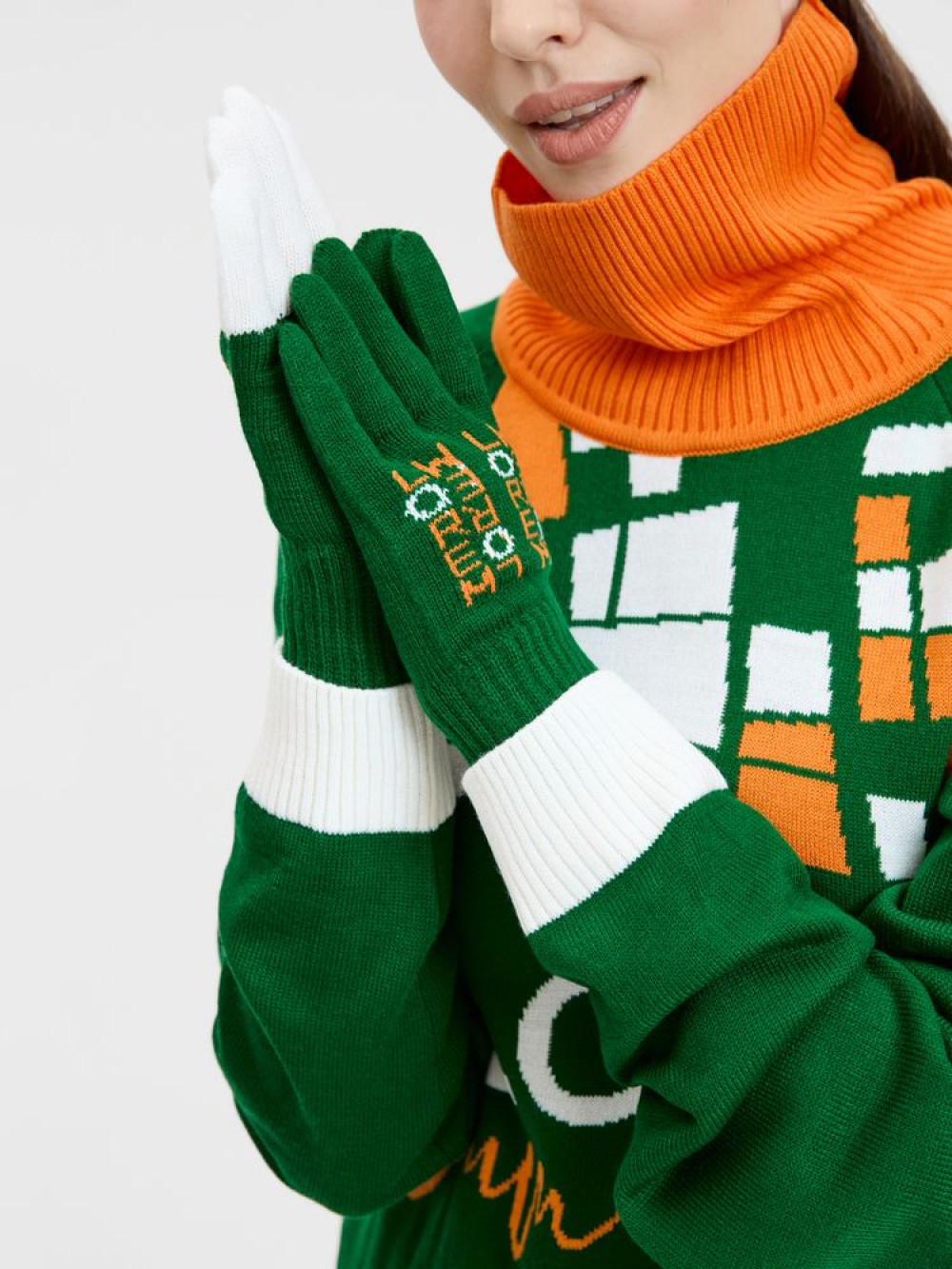 два цвета: один цвет — фон, второй цвет — узор. Сама перчатка может